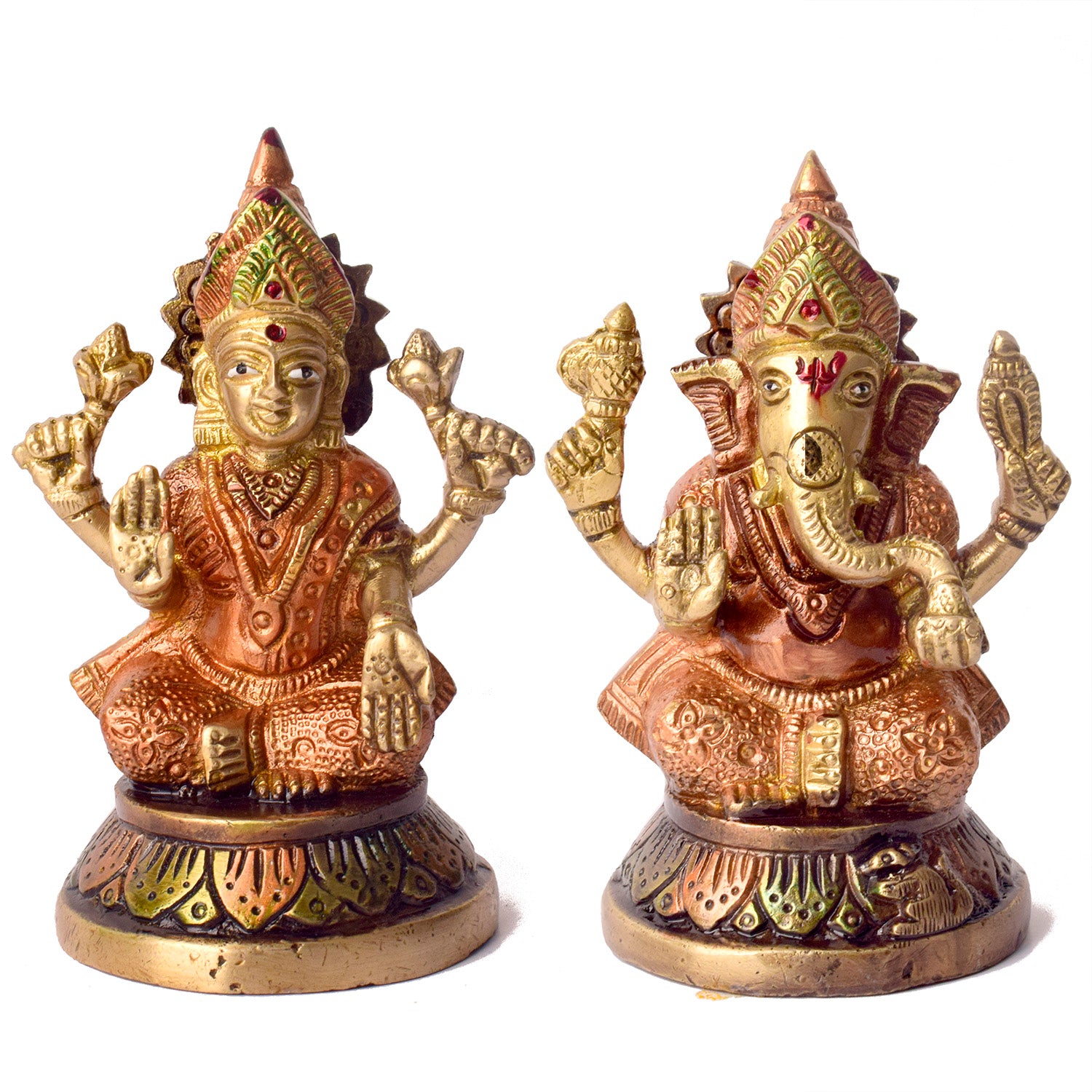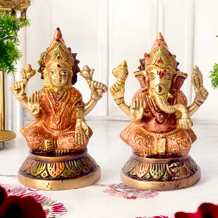 4.5 Inch Handcrafted Brass Lakshmi Ganesha Idol – satvikstore.in