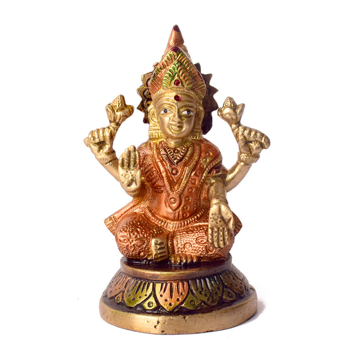 4.5 Inch Handcrafted Brass Lakshmi Ganesha Idol