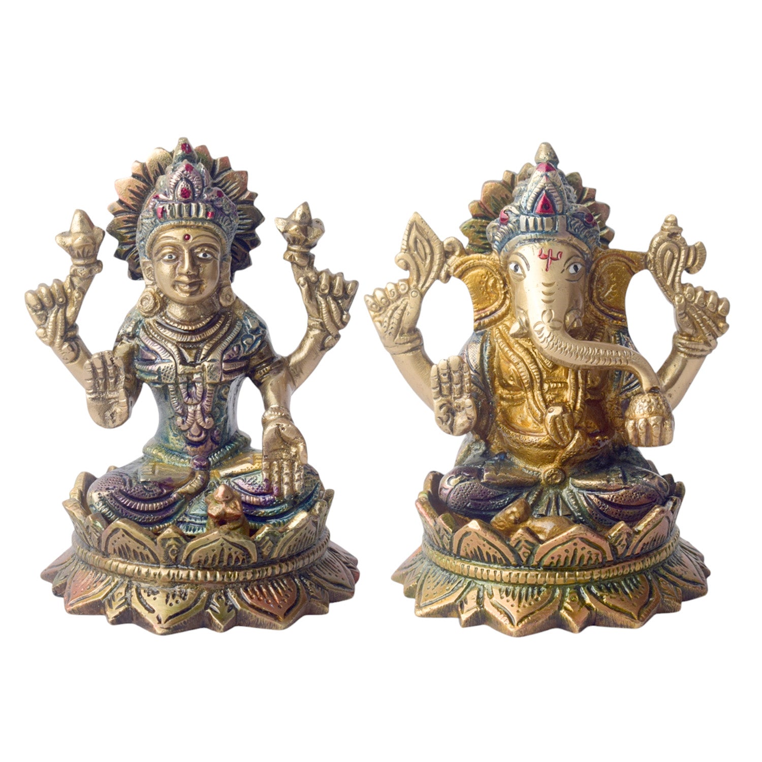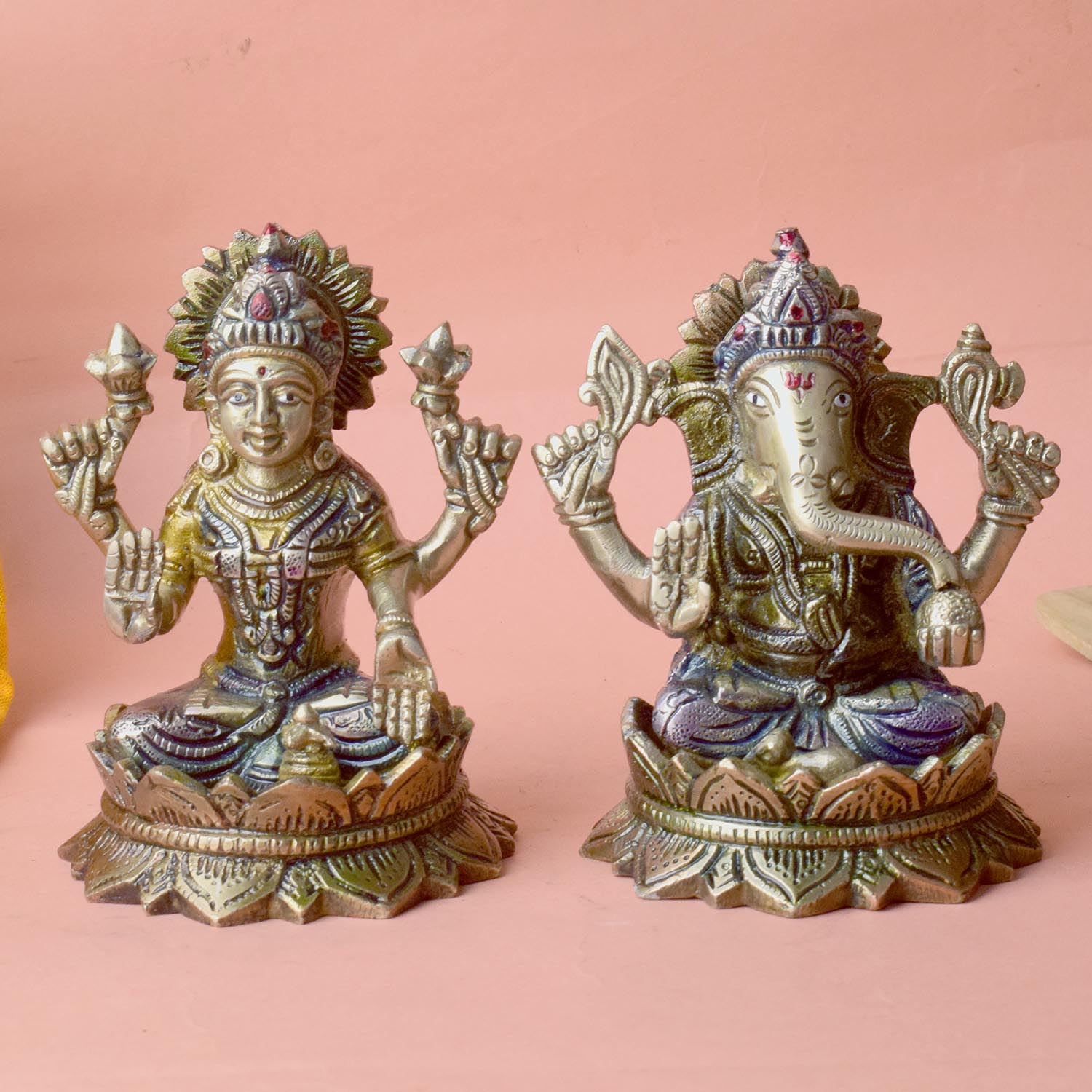 Buy Online | Gorgeous Brass Lakshmi Ganesha Pair Idol | Satvikstore.in – satvikstore.in