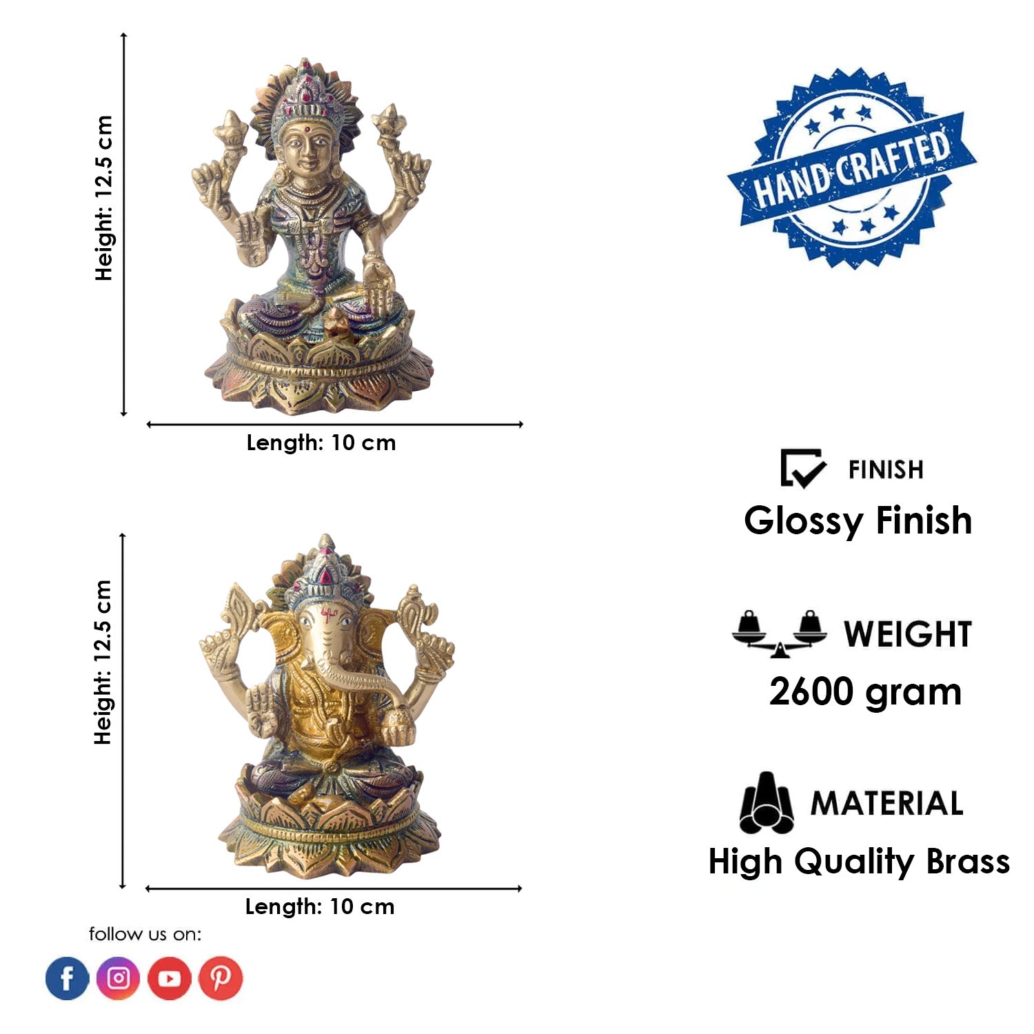 • Item Name: 4.9 Inch Brass Lakshmi Ganesha Idol –  for Blessings