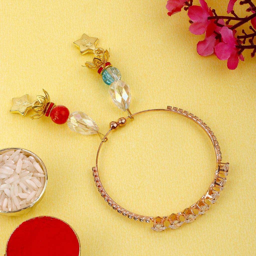 Beaded Bhaiya Rakhi Set of 2: Bedecked with colorful beads, these rakhis represent the joyous moments and cherished memories of growing up together. Embrace nostalgia and affection with this delightful beaded rakhi set.