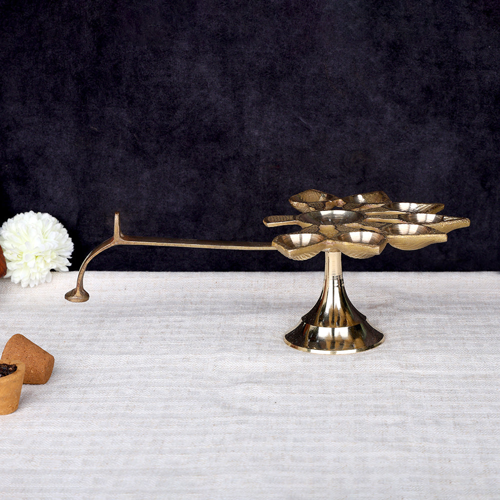 • Item Name: Brass 7 Mukhi Aarti Diya with Handle
