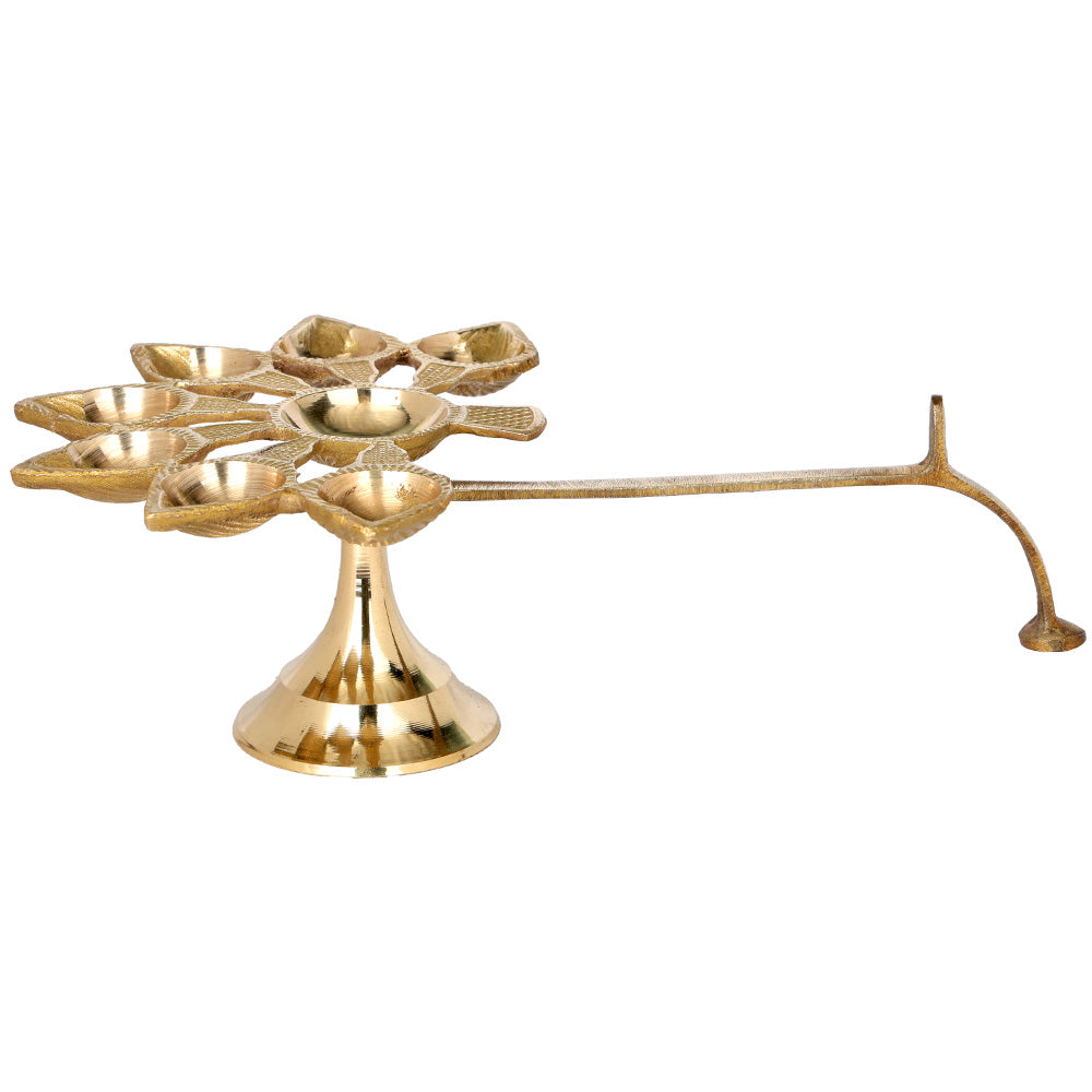 7 mukhi aarti diya | 7 aarti diya | eleven wick diya | brass aarti diya | traditional aarti lamp | brass pooja diya | spiritual lighting | handmade brass diya | decorative pooja lamp | religious brass diya | temple diya |  religious brass diya