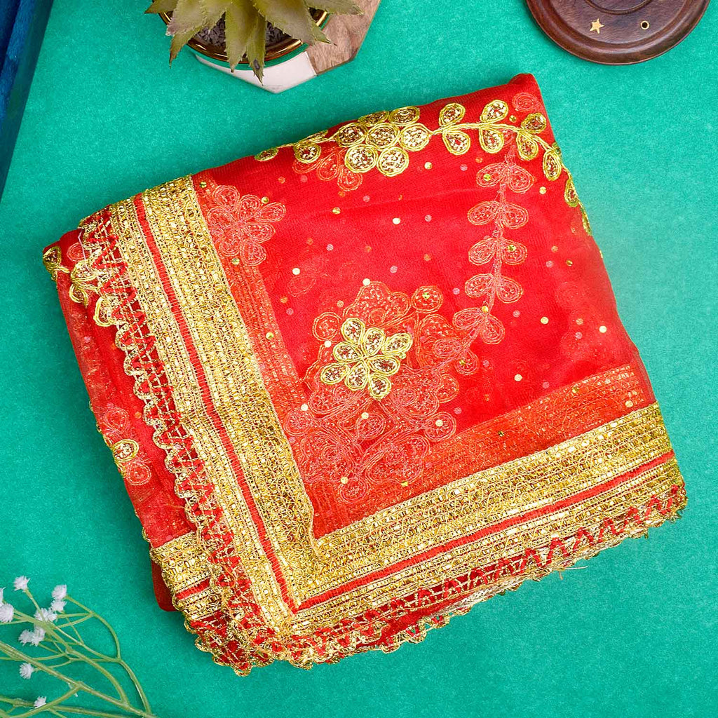Premium-quality fabric with rich detailing, making it perfect for Mata ka Shringar and temple decor.