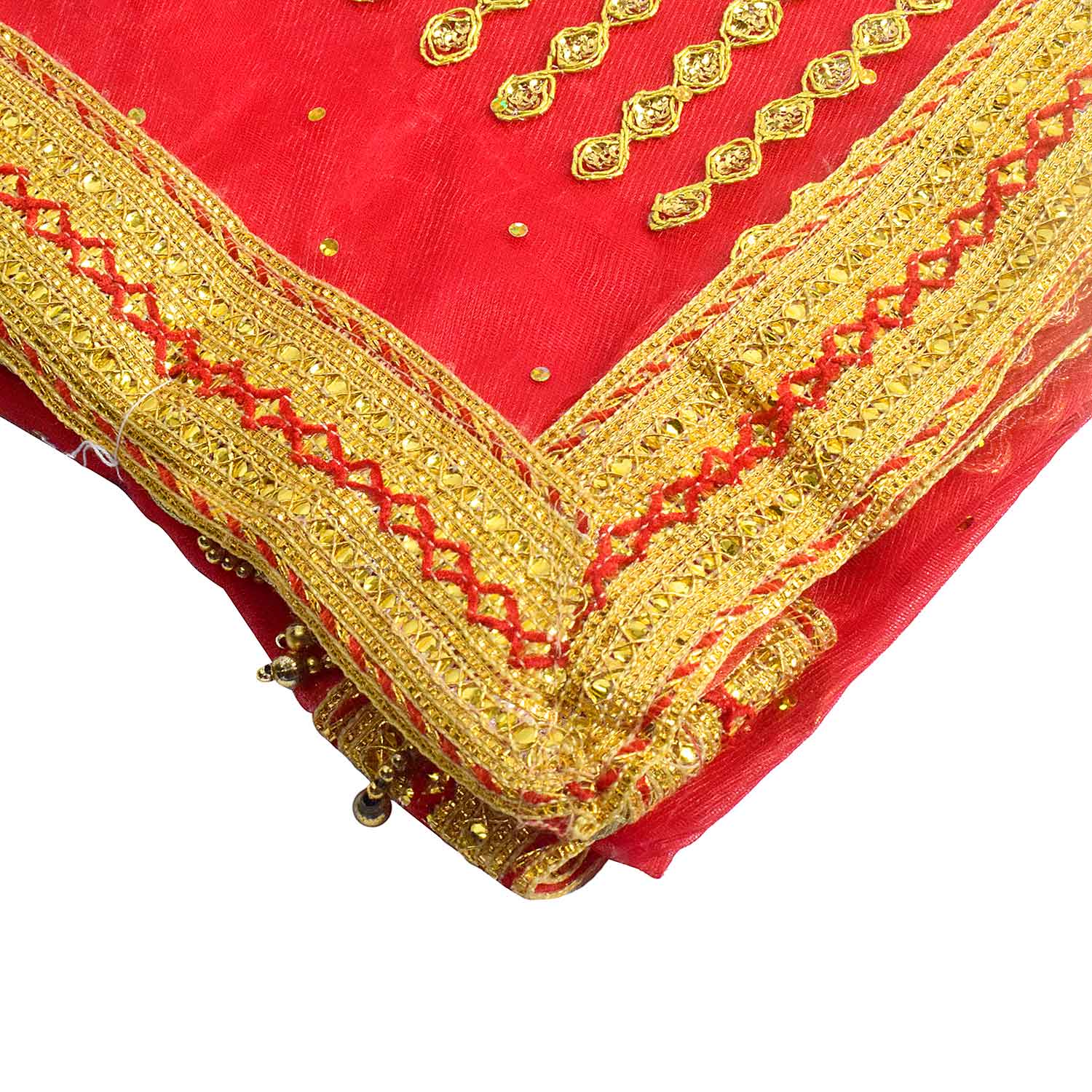 Ritual dupatta for worship | 74x43 inch Mata ki chunari | spiritual prayer cloth | devotional pooja vastra | temple worship accessory | vibrant red chunni | sacred idol covering | auspicious ritual fabric | traditional religious dupatta | elegant pooja garment