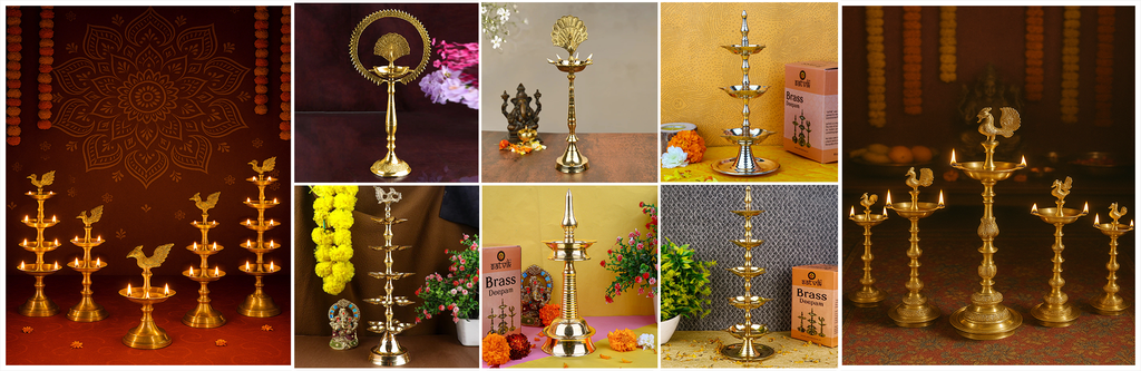 Our collection features a wide range of traditional Kerala vilakku made by skilled artisans and available in various styles such as: