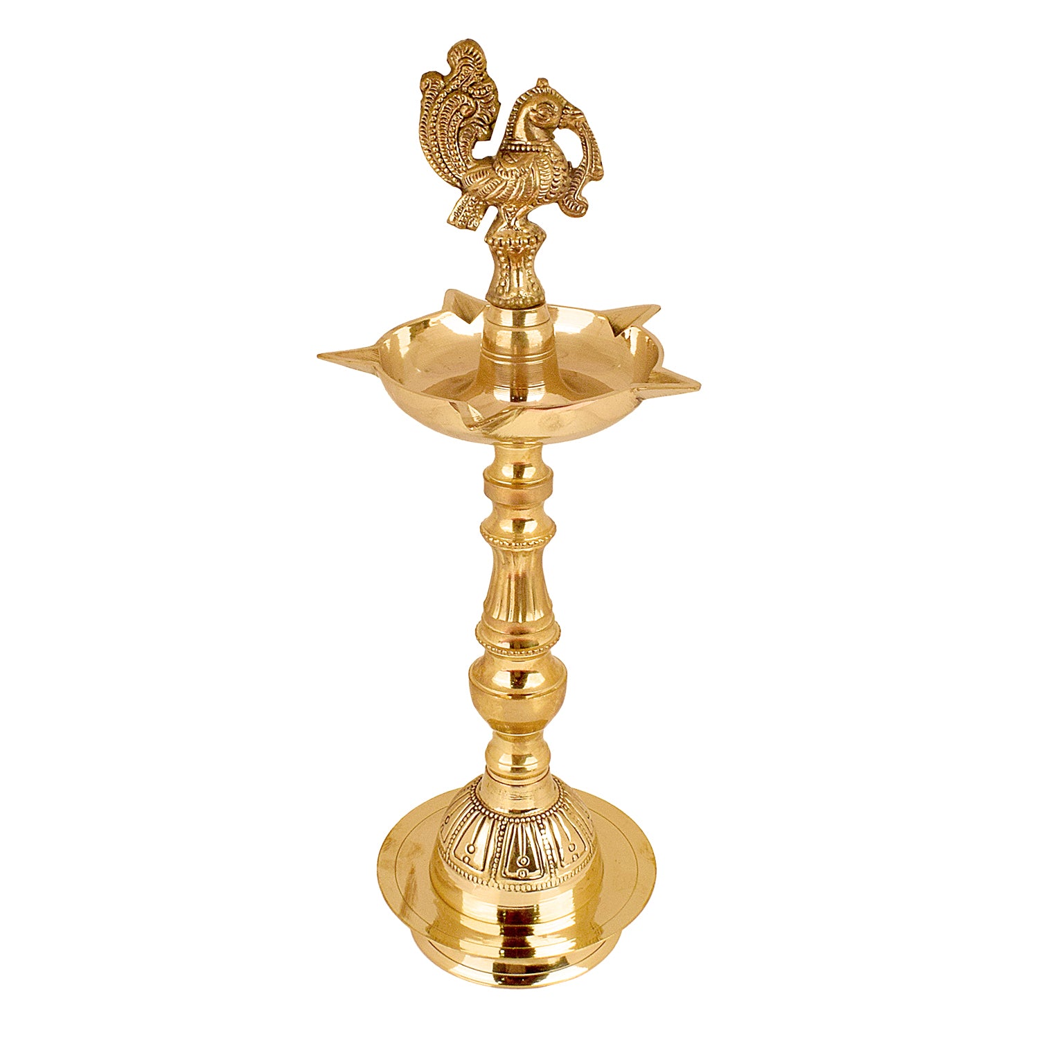 Buy 13 Inch Embossed Brass Peacock Kerala Samai Diya | Satvikstore.in – satvikstore.in
