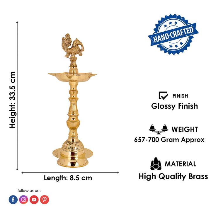 • Item Name: Handcrafted Brass Kerala Peacock Inauguration Lamp 13 Inch