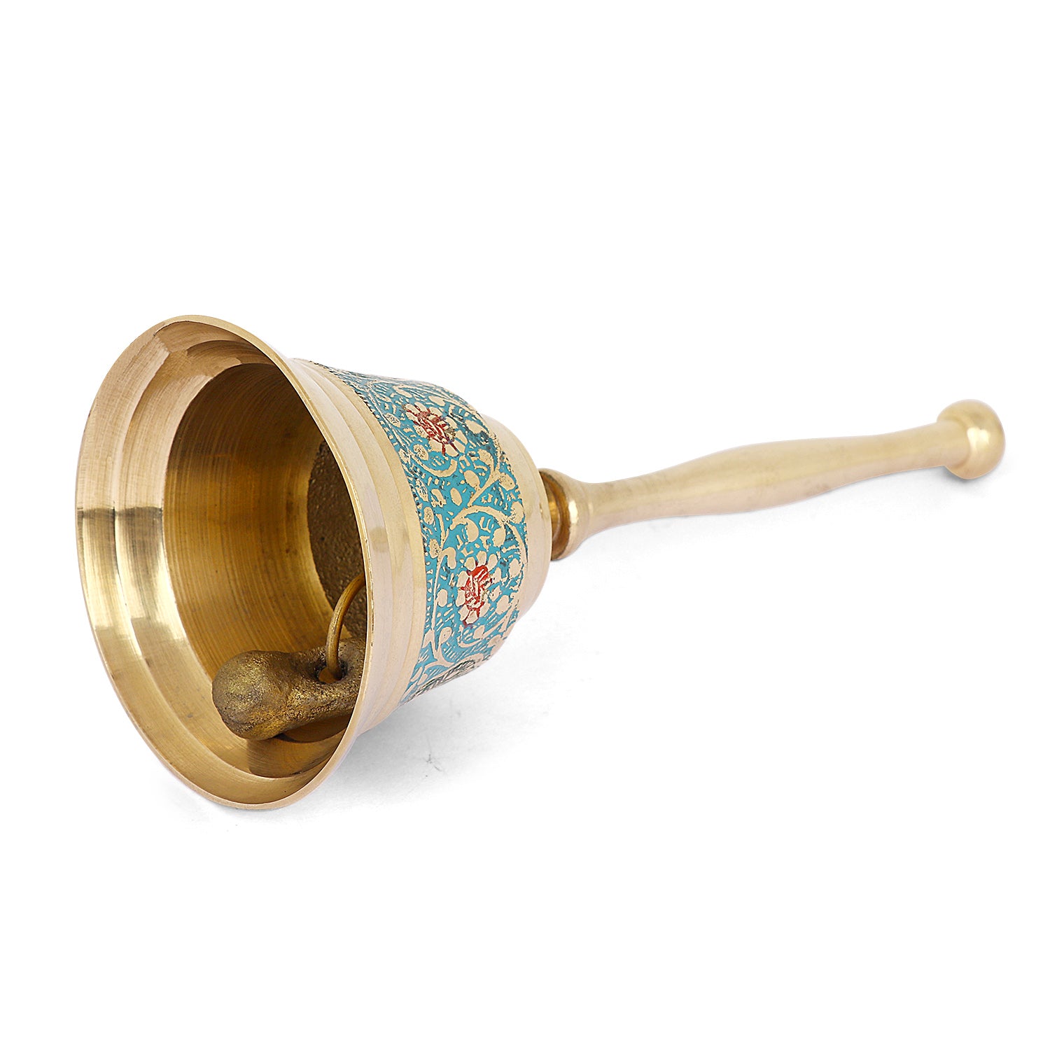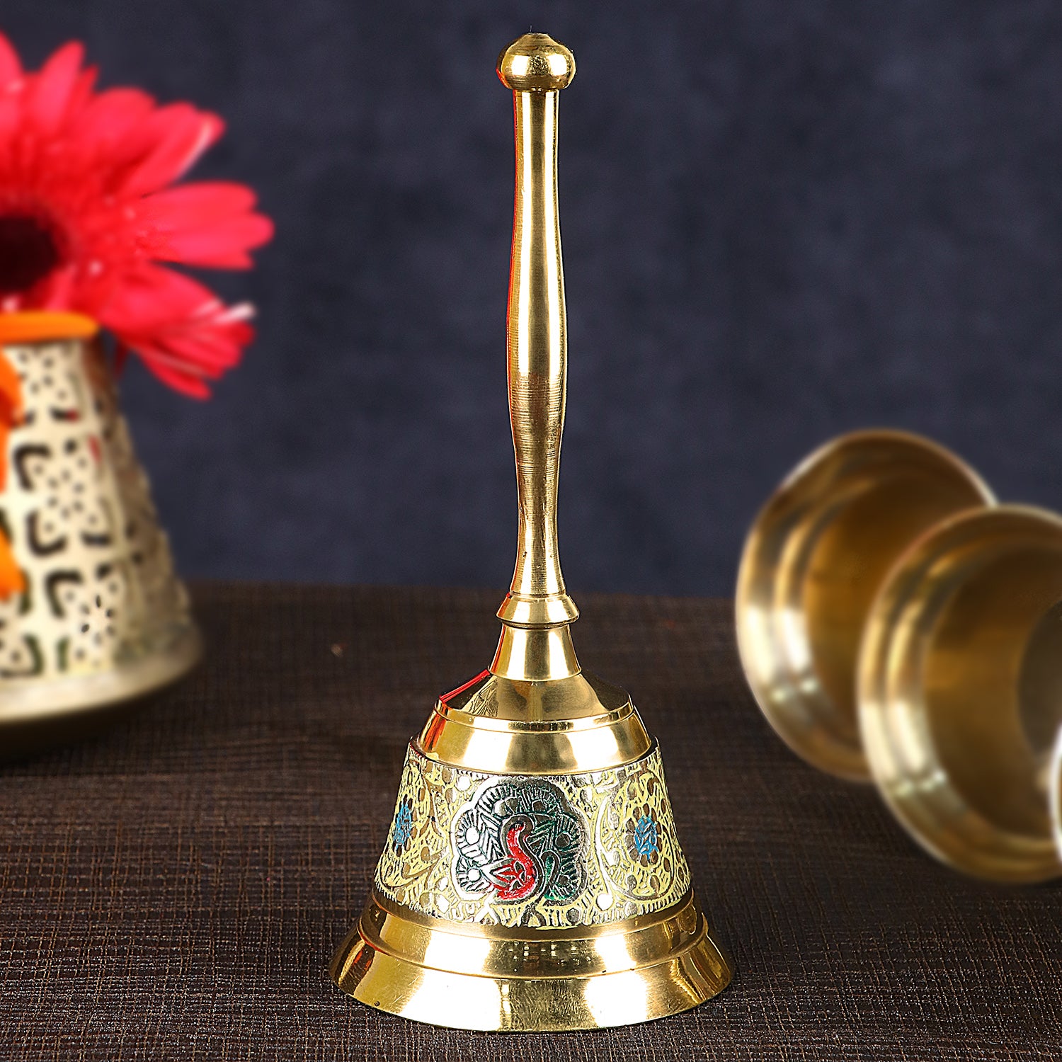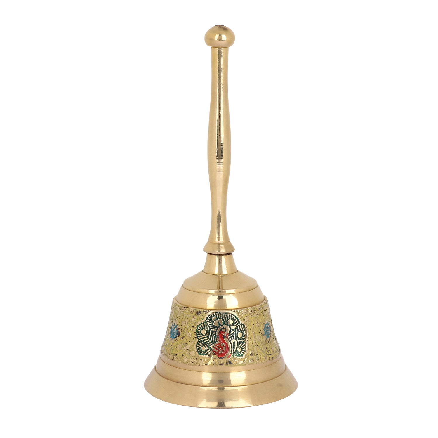 enthralling brass puja bell | traditional pooja ghanti | brass temple bell | devotional puja bell | Indian ritual bell | handcrafted brass ghanti | spiritual aarti bell | brass bell for prayer | decorative puja bell | auspicious pooja bell | Indian traditional puja bell | Handheld prayer bell | Devotional puja accessory | Pure brass pooja bell | Religious ghanti for worship | Puja bell | Brass puja bell | Ghanti for temple | Hindu prayer bell | Aarti bell | Spiritual pooja bell | Temple bell |