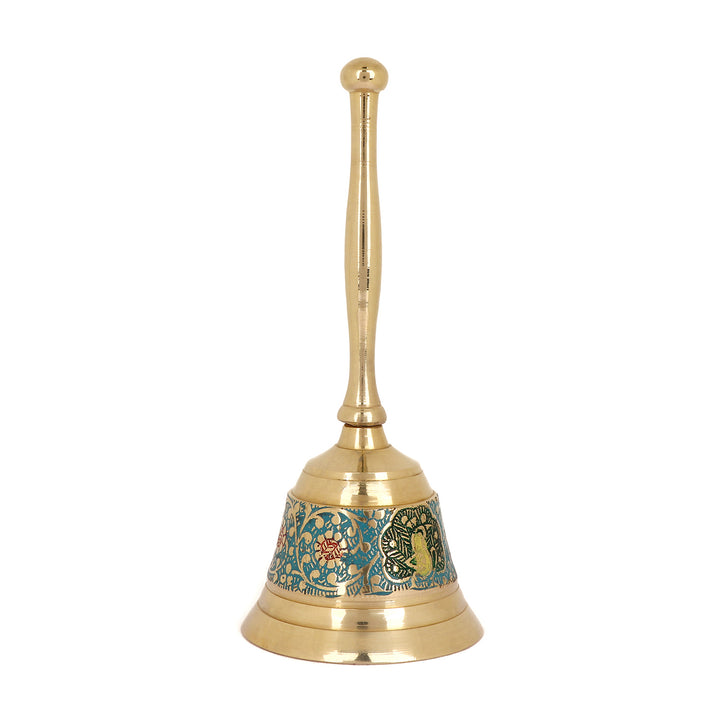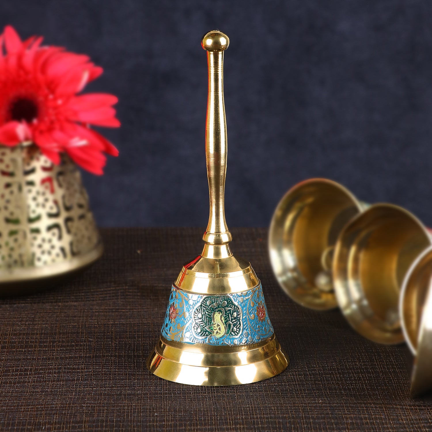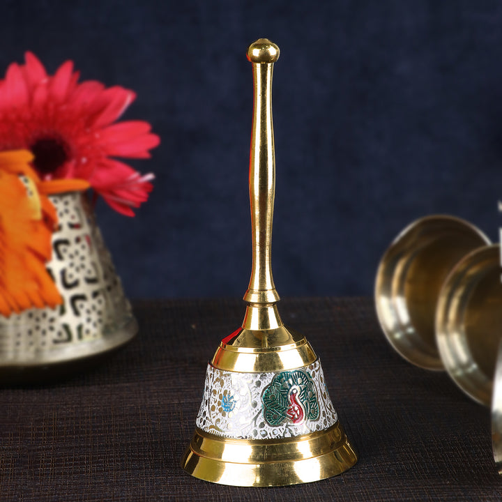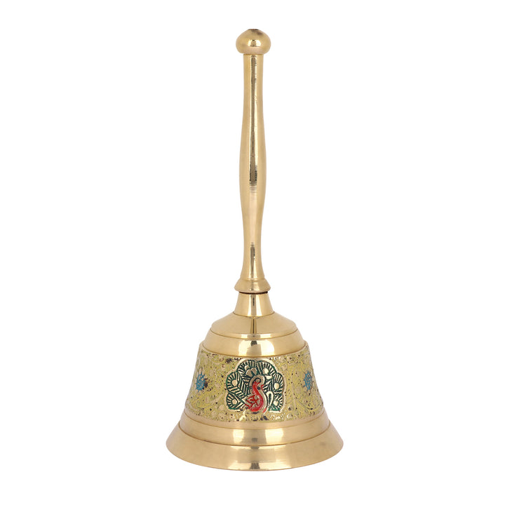 enthralling brass puja bell | traditional pooja ghanti | brass temple bell | devotional puja bell | Indian ritual bell | handcrafted brass ghanti | spiritual aarti bell | brass bell for prayer | decorative puja bell | auspicious pooja bell | Indian traditional puja bell | Handheld prayer bell | Devotional puja accessory | Pure brass pooja bell | Religious ghanti for worship | Puja bell | Brass puja bell | Ghanti for temple | Hindu prayer bell | Aarti bell | Spiritual pooja bell | Temple bell |