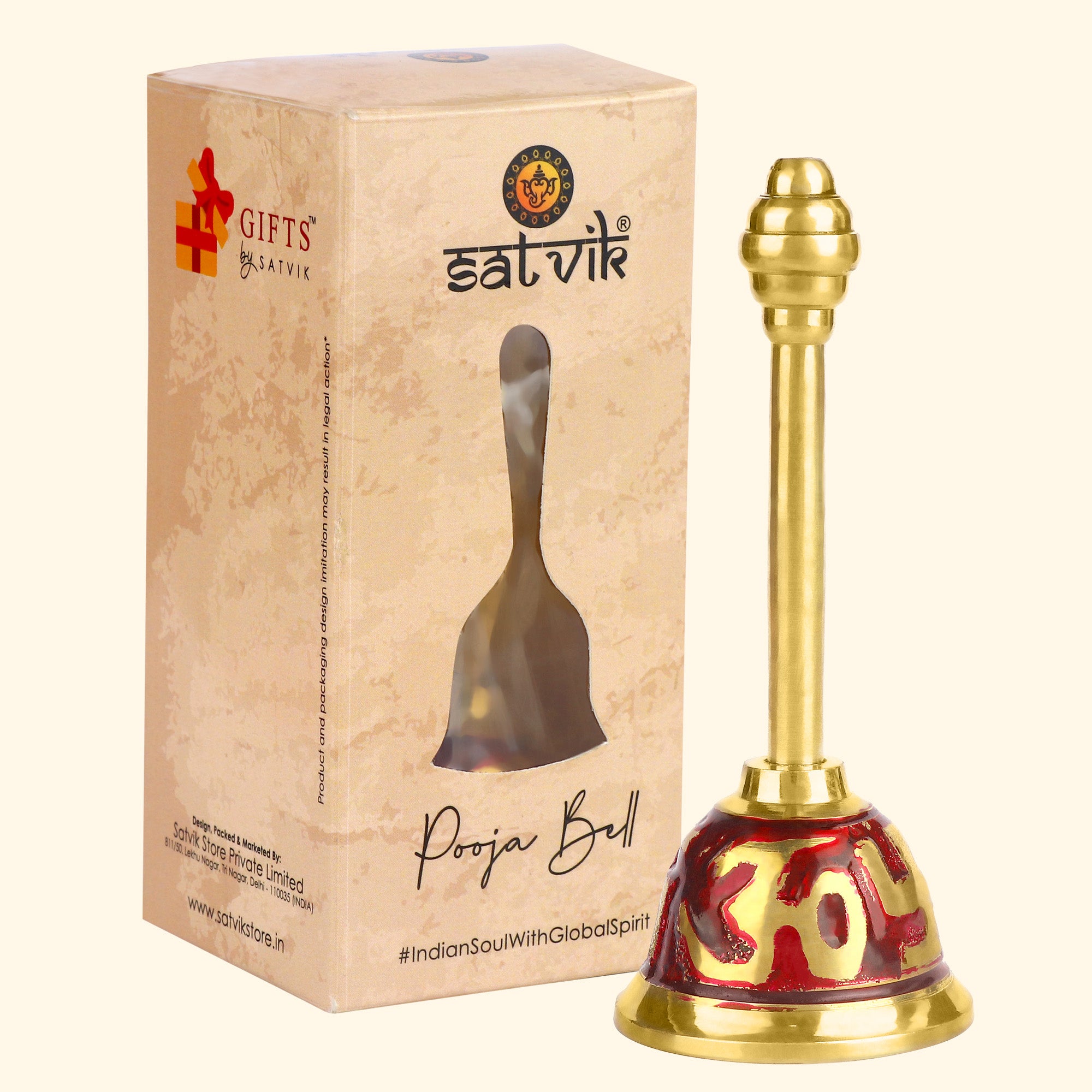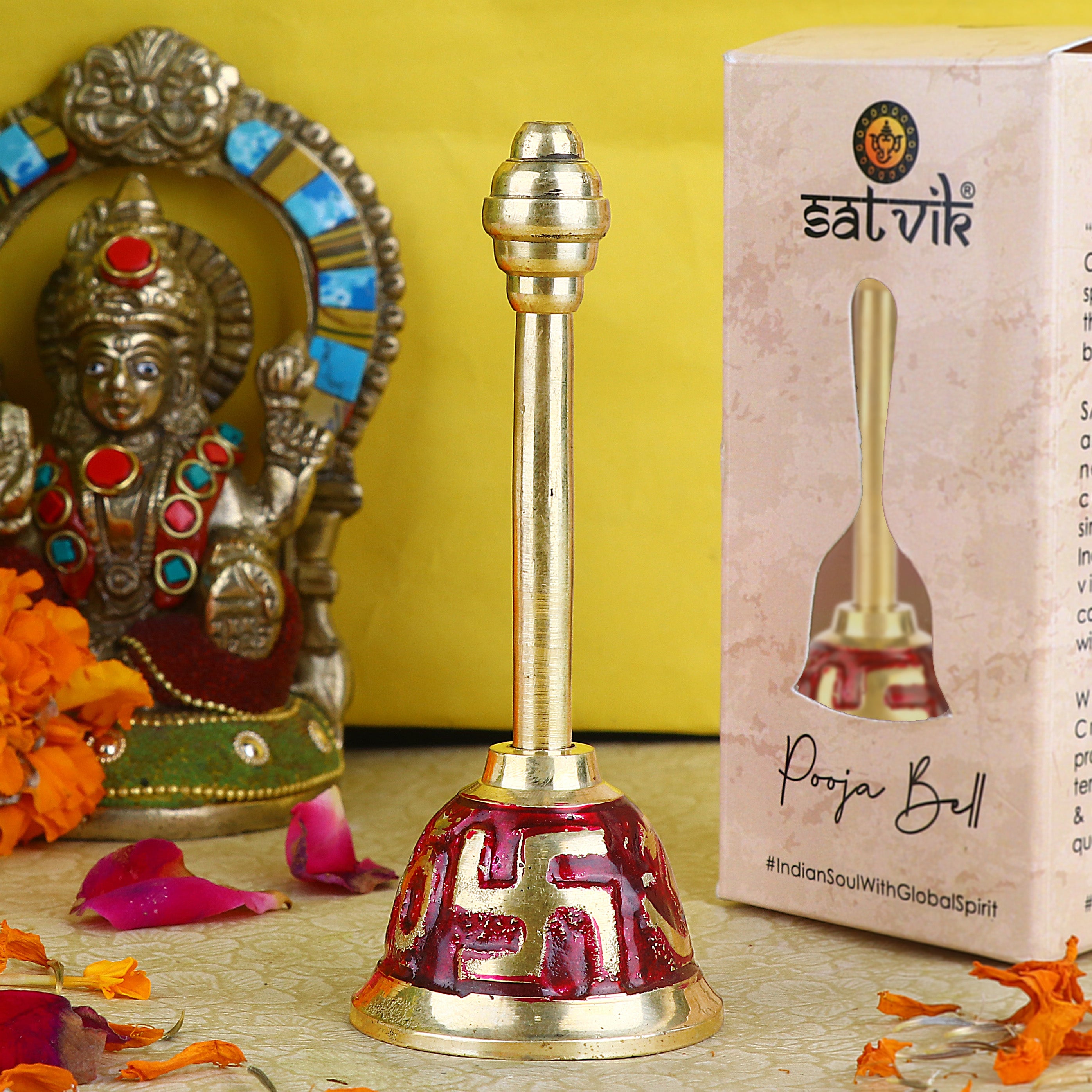 Shop Om Swastik Brass Puja Red Bell | Buy Online | Satvikstore.in – satvikstore.in