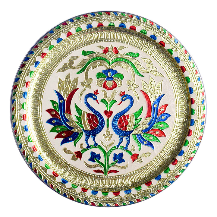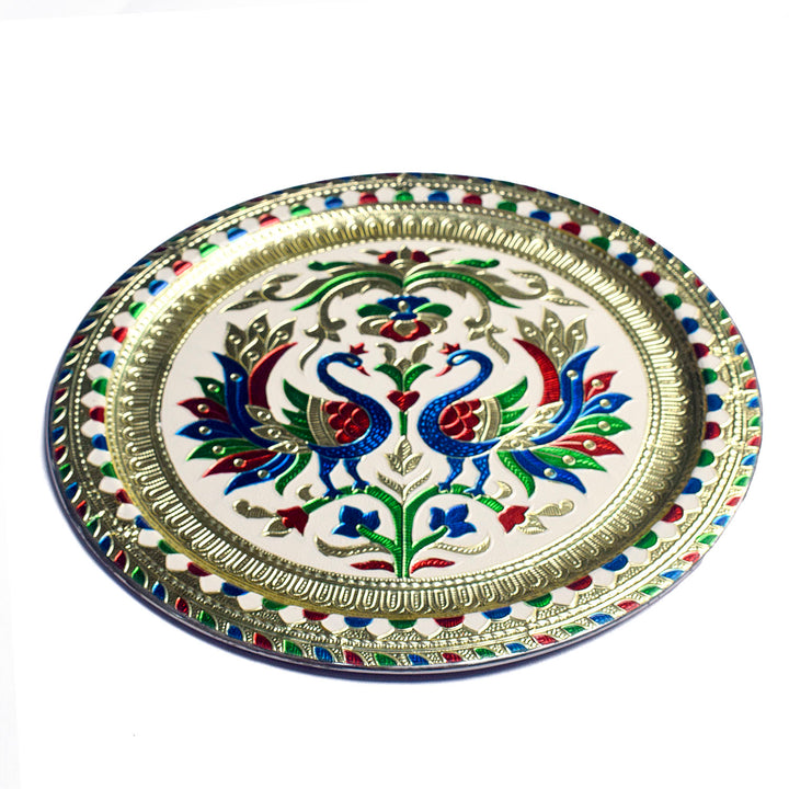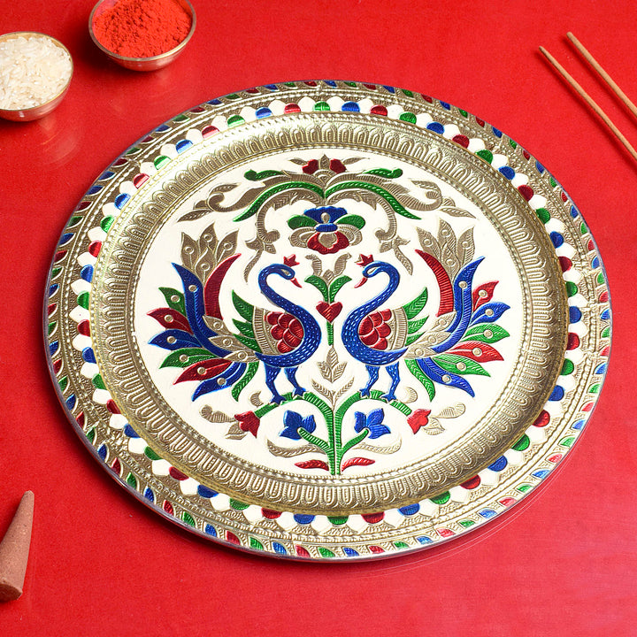 Peacock Embossed Puja Thali - Festive Delight for Diwali & Karwa Chauth