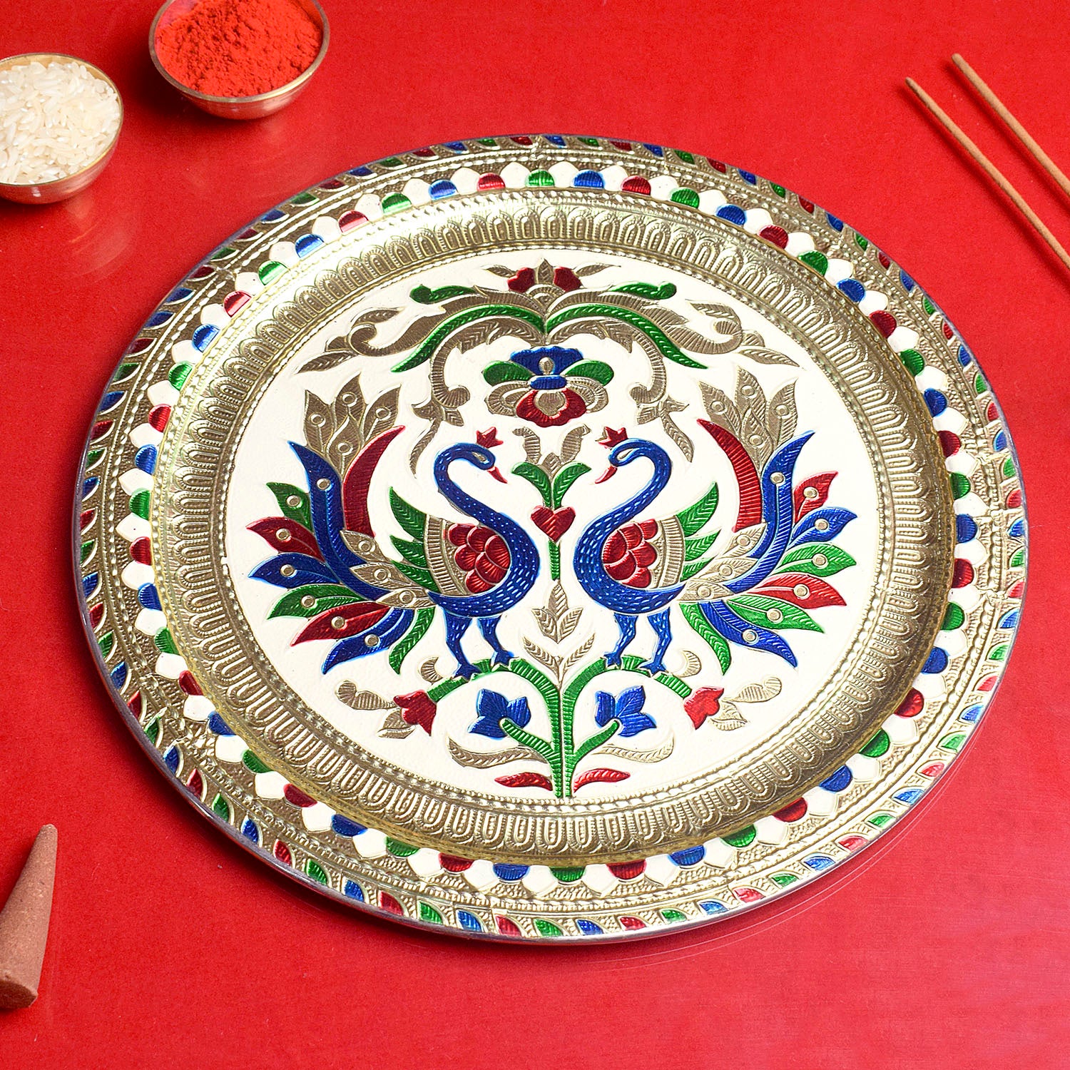Buy Online Peacock Embossed Puja Thali | Satvikstore.in – satvikstore.in