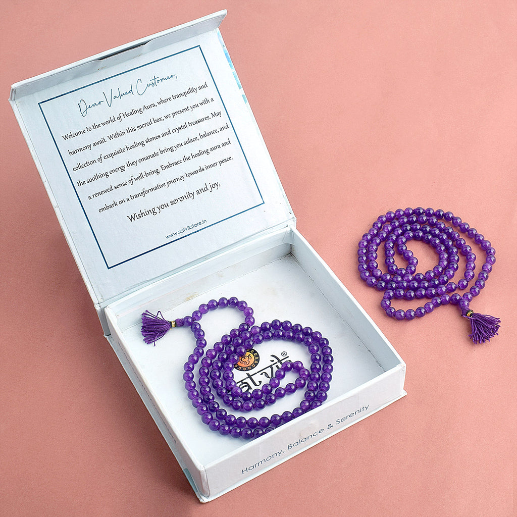 💜 Amethyst Mala – Enhances intuition, peace & meditation