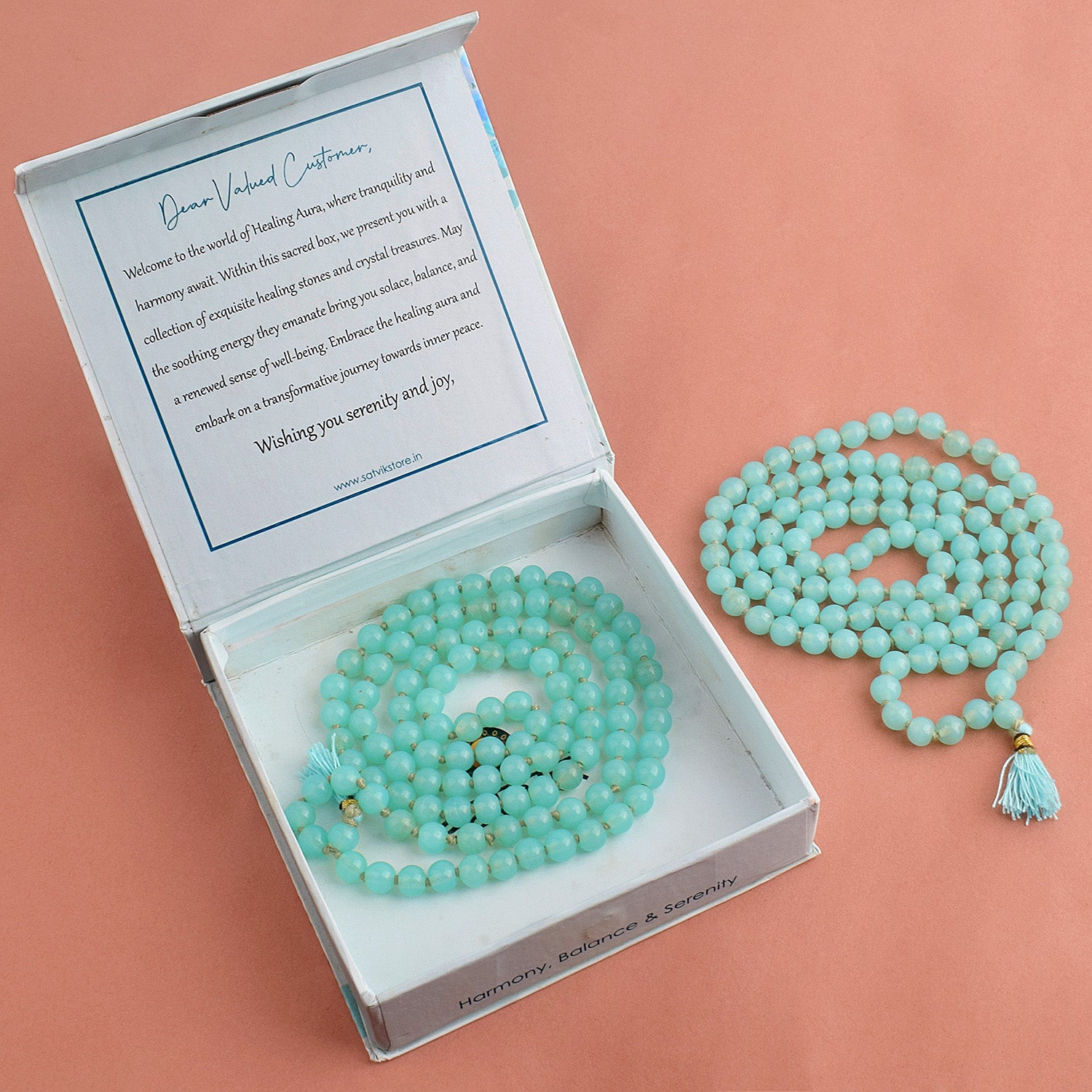 Cyan Green Hakik Jap Mala for Healing & Abundance | Green Agate Mala for Positive Energy & Growth | Spiritual Mala for Heart Chakra Activation | Meditation Beads for Inner Peace & Stability | Healing Mala for Love, Success & Protection |