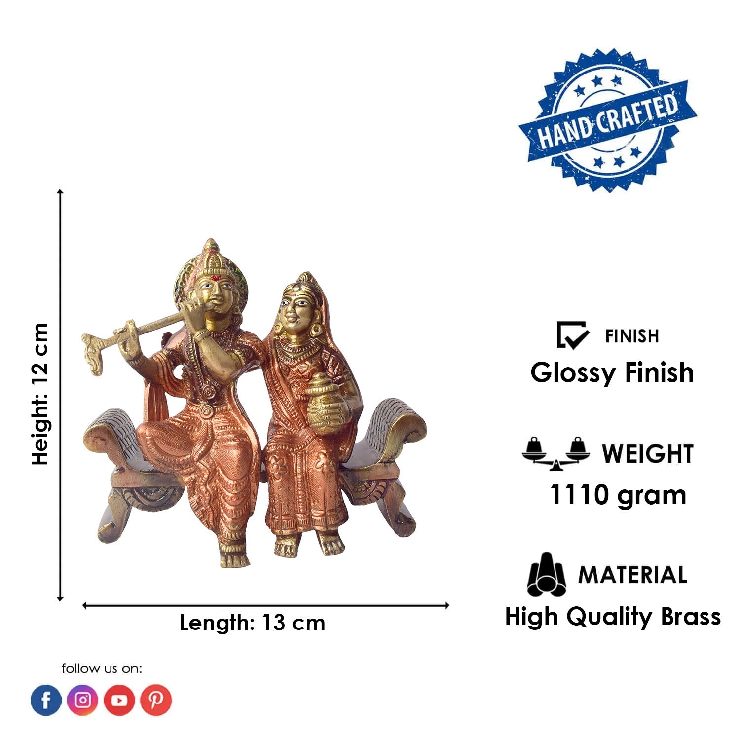 • Material: The Radha Krishna Idol is made from Pure Brass Virgin Material.