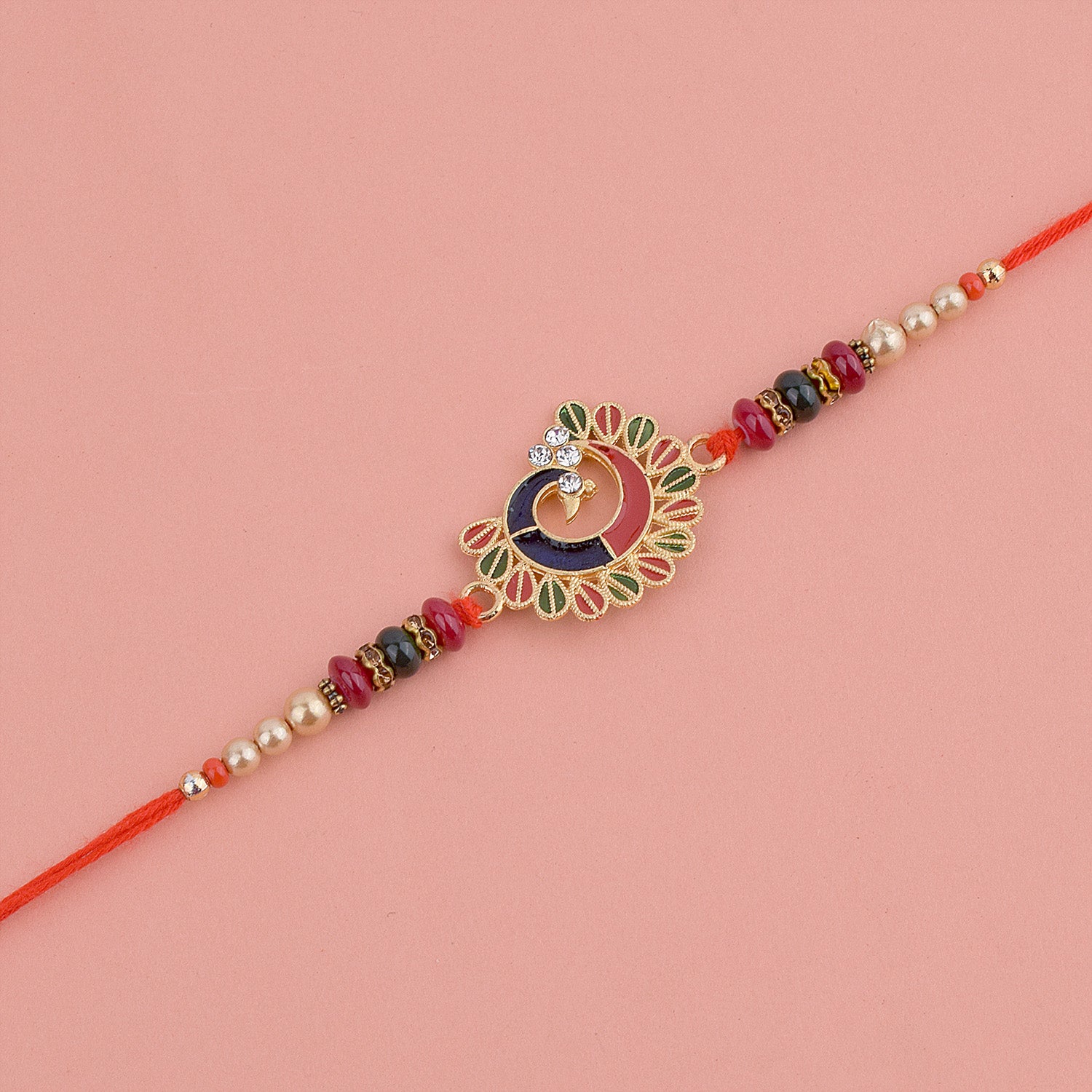 Beaded Rakhi: Adorned with intricate beads, our beaded rakhi collection exudes charm and elegance. Celebrate the joyous bond with your siblings as you tie these vibrant and delightful rakhis on their wrists.