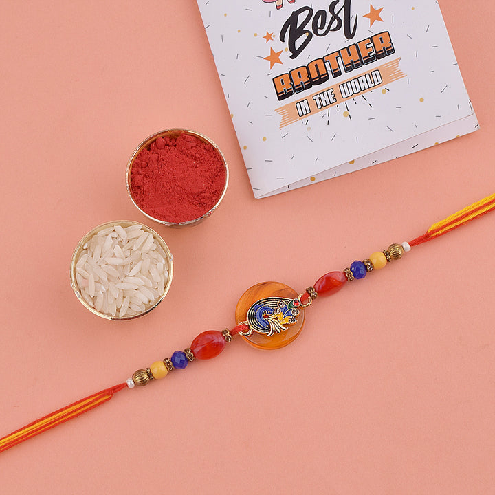 • Package:Β 1 Pc Rakhi, roli akshat and greeting card
