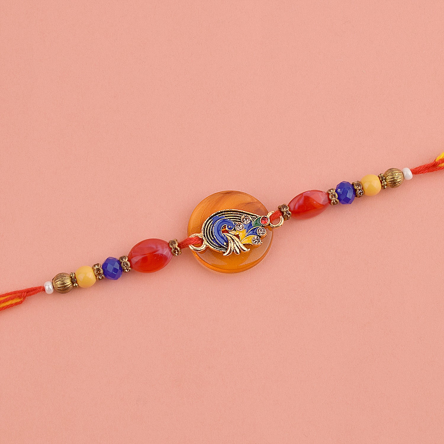 Beaded Rakhi: Adorned with intricate beads, our beaded rakhi collection exudes charm and elegance. Celebrate the joyous bond with your siblings as you tie these vibrant and delightful rakhis on their wrists.