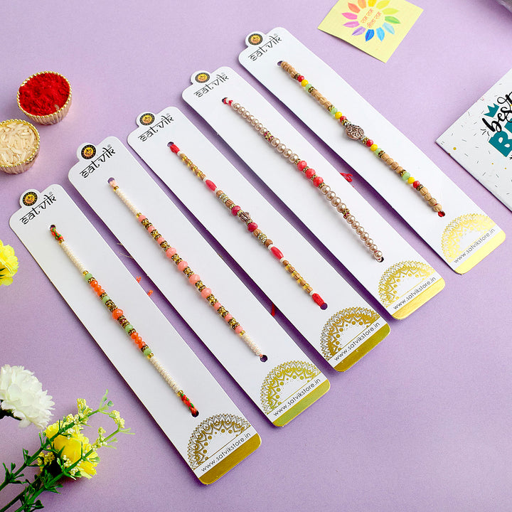 Bond of Blessings Pearl Rakhi Set of 5