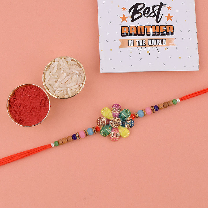 Beaded Rakhi: Adorned with intricate beads, our beaded rakhi collection exudes charm and elegance. Celebrate the joyous bond with your siblings as you tie these vibrant and delightful rakhis on their wrists.