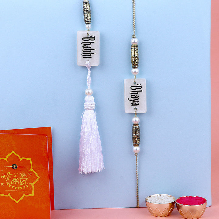 Beaded Bhaiya Rakhi Set of 2: Bedecked with colorful beads, these rakhis represent the joyous moments and cherished memories of growing up together. Embrace nostalgia and affection with this delightful beaded rakhi set.