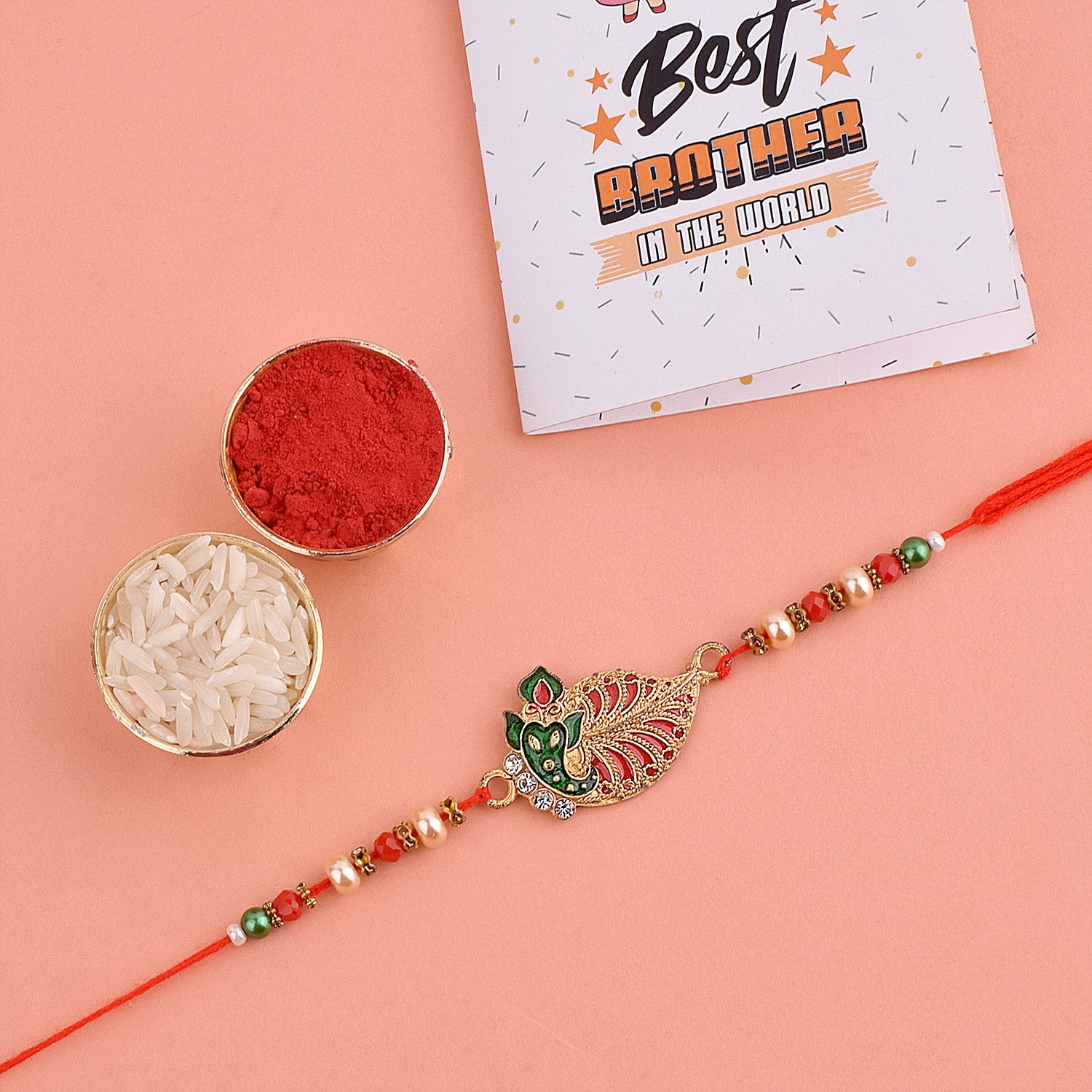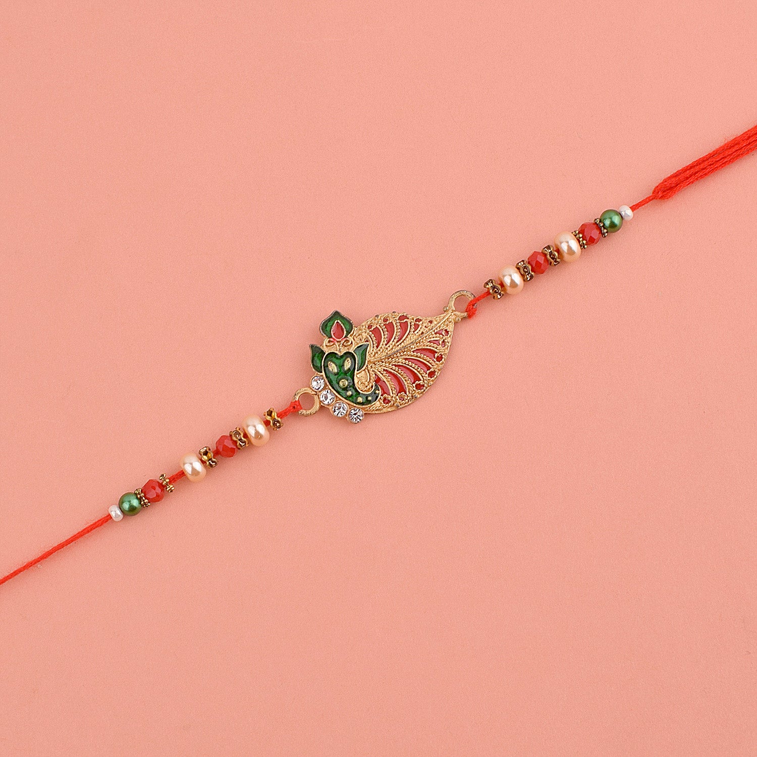 Beaded Rakhi: Adorned with intricate beads, our beaded rakhi collection exudes charm and elegance. Celebrate the joyous bond with your siblings as you tie these vibrant and delightful rakhis on their wrists.