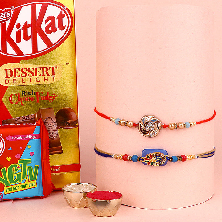 • Package: Set of 2 Bhaiya Rakhi, 1 Greeting card, 1 Roli Chawal Bottle, 1Β Chocolate Pack