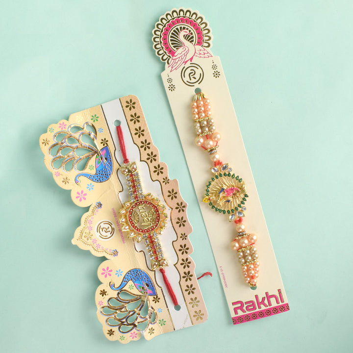 Beaded Bhaiya Rakhi Set of 2: Bedecked with colorful beads, these rakhis represent the joyous moments and cherished memories of growing up together. Embrace nostalgia and affection with this delightful beaded rakhi set.