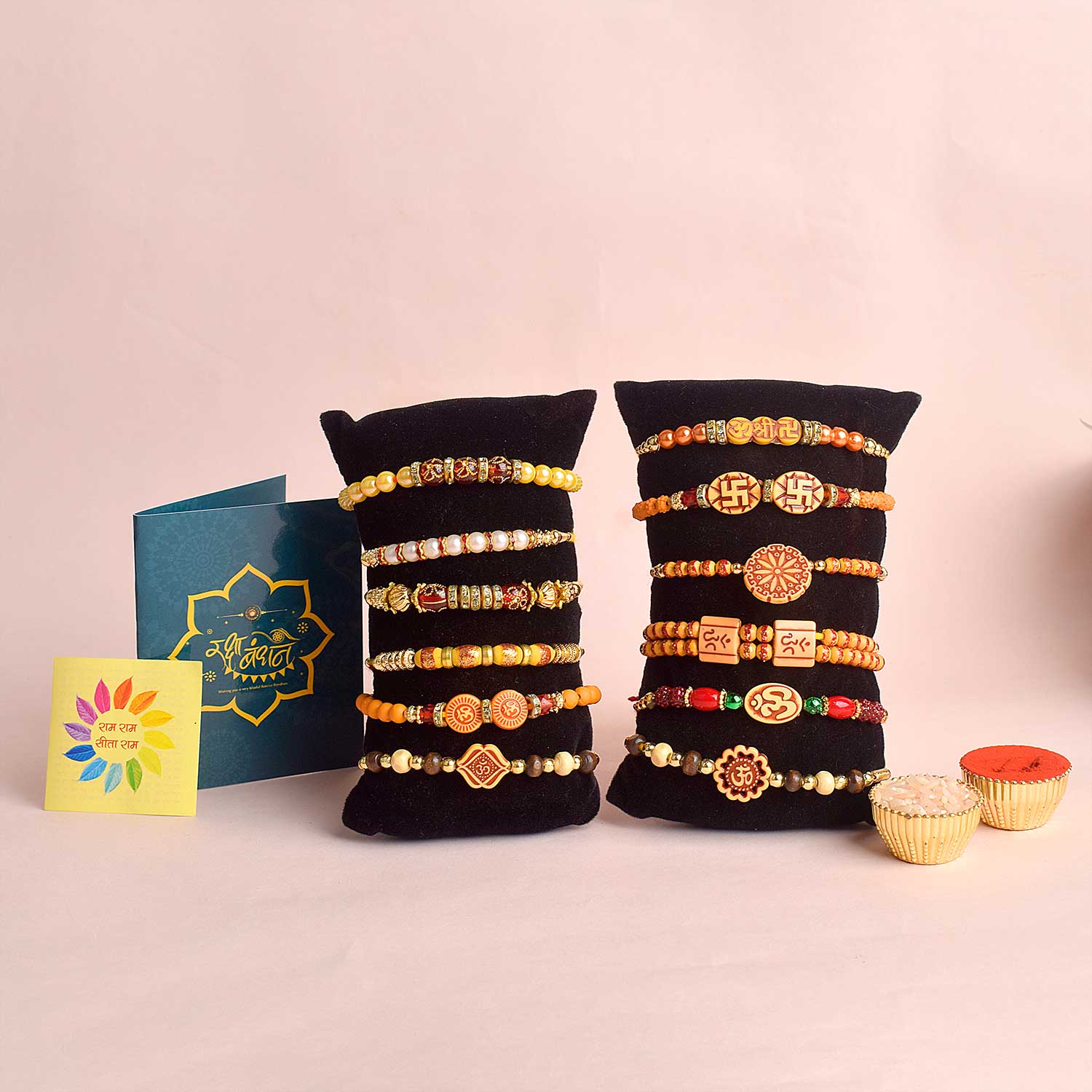 • Package: Men Rakhi (Set of 12), Rakhi Roli Chawal Pack, Sticker of Ram & Sita