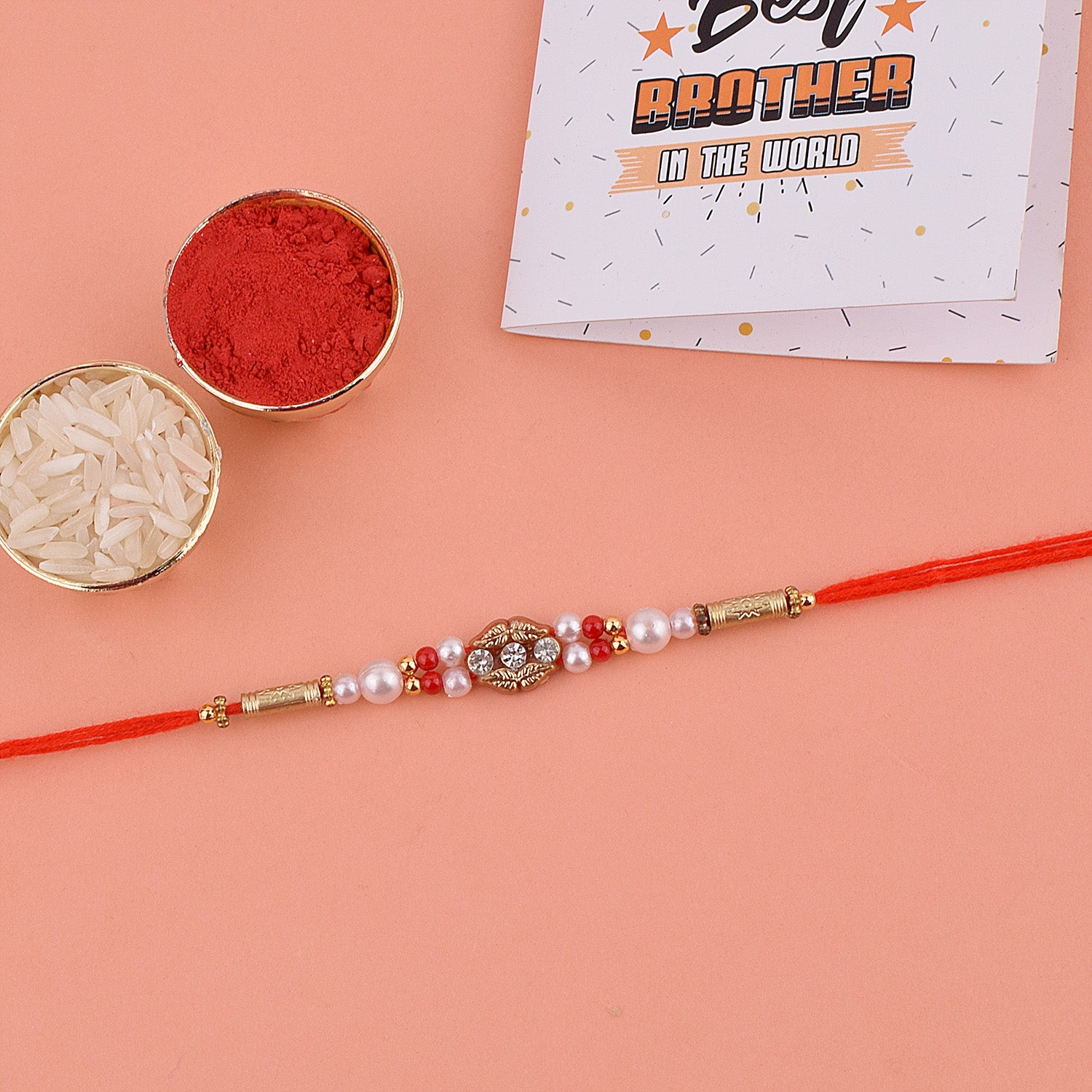 • Package:Β 1 Pc Rakhi, roli akshat and greeting card