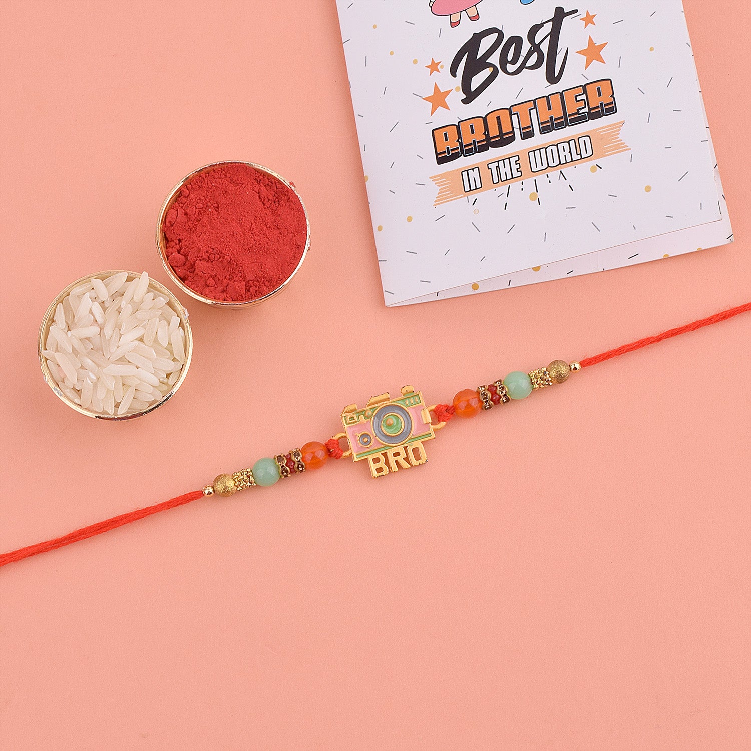 • Package:Β 1 Pc Rakhi, roli akshat and greeting card