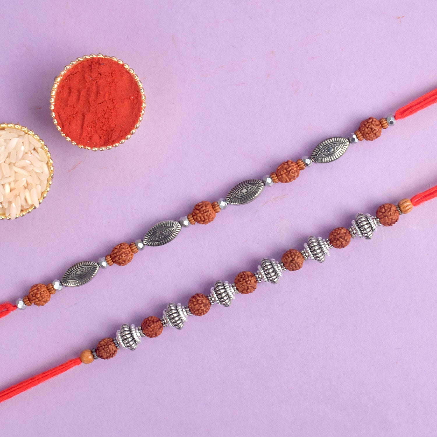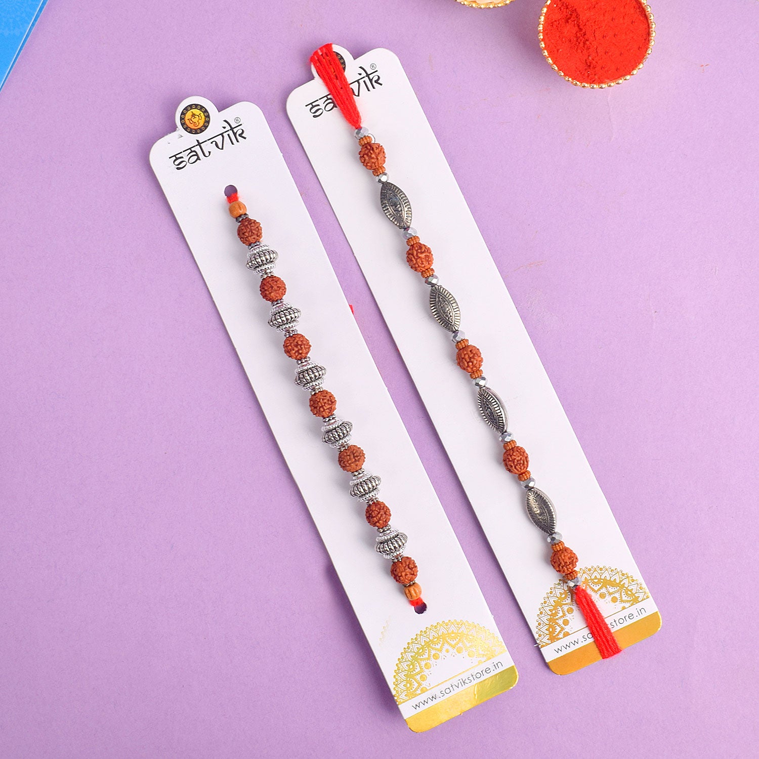 Fascinating Rudraksha Beaded Bhaiya Rakhi Set of 2