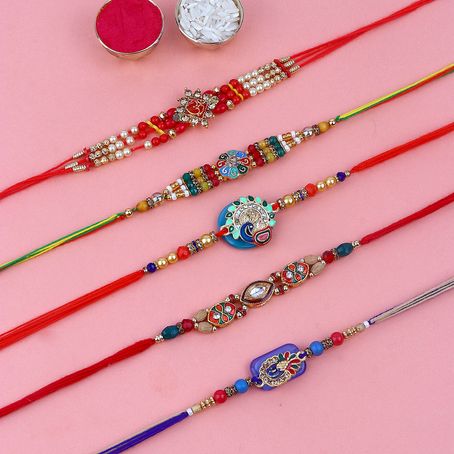 Beaded Rakhi: Adorned with intricate beads, our beaded rakhi collection exudes charm and elegance. Celebrate the joyous bond with your siblings as you tie these vibrant and delightful rakhis on their wrists.