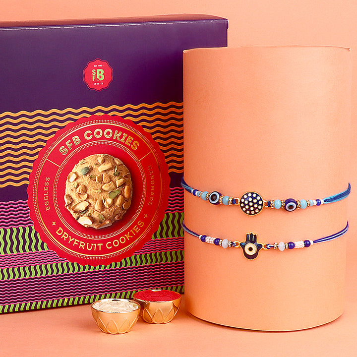 • Package: Set of 2 Bhaiya Rakhi, 1 Greeting card, 1 Roli Chawal Bottle, 1Β Cookies Pack