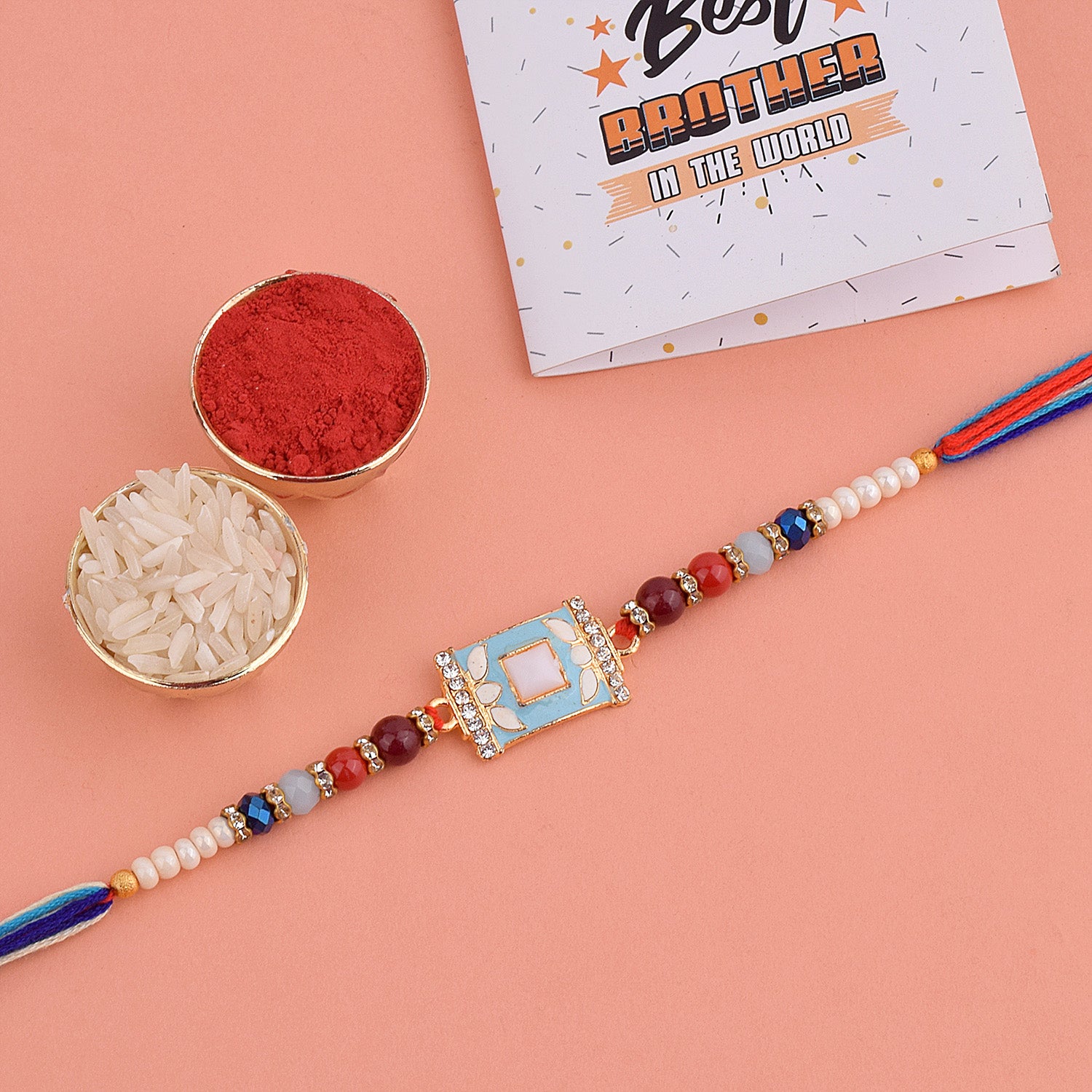 Beaded Rakhi: Adorned with intricate beads, our beaded rakhi collection exudes charm and elegance. Celebrate the joyous bond with your siblings as you tie these vibrant and delightful rakhis on their wrists.