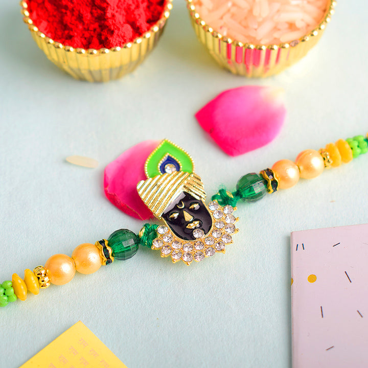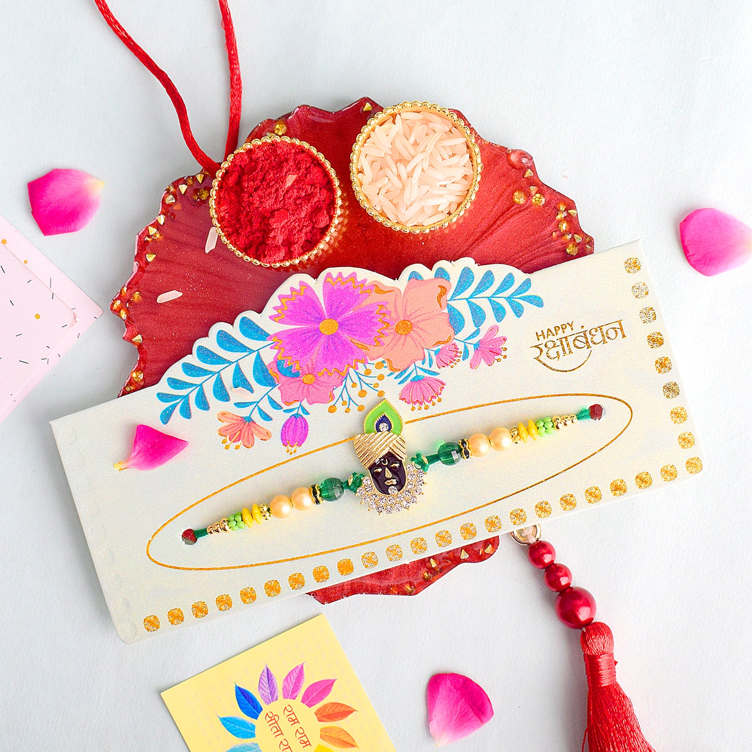 • About Product: Celebrate Raksha Bandhan with our handcrafted Rakhis! Our collection includes beaded Rakhis, elegant Kundan Rakhis, and opulent Zardosi Rakhis, all meticulously designed with love and care. These exquisite creations are a perfect way to express your affection and strengthen the bond with your siblings. Each Rakhi reflects the artistry of our skilled artisans, making them unique and special. Choose from a variety of vibrant colors, intricate patterns, and sparkling stones to find the perfect Rakhi that complements your sibling's style. Embrace the tradition of Raksha Bandhan with our handcrafted Rakhis and create cherished memories that last a lifetime. Shop now and make this Raksha Bandhan an extraordinary celebration of love and togetherness!
