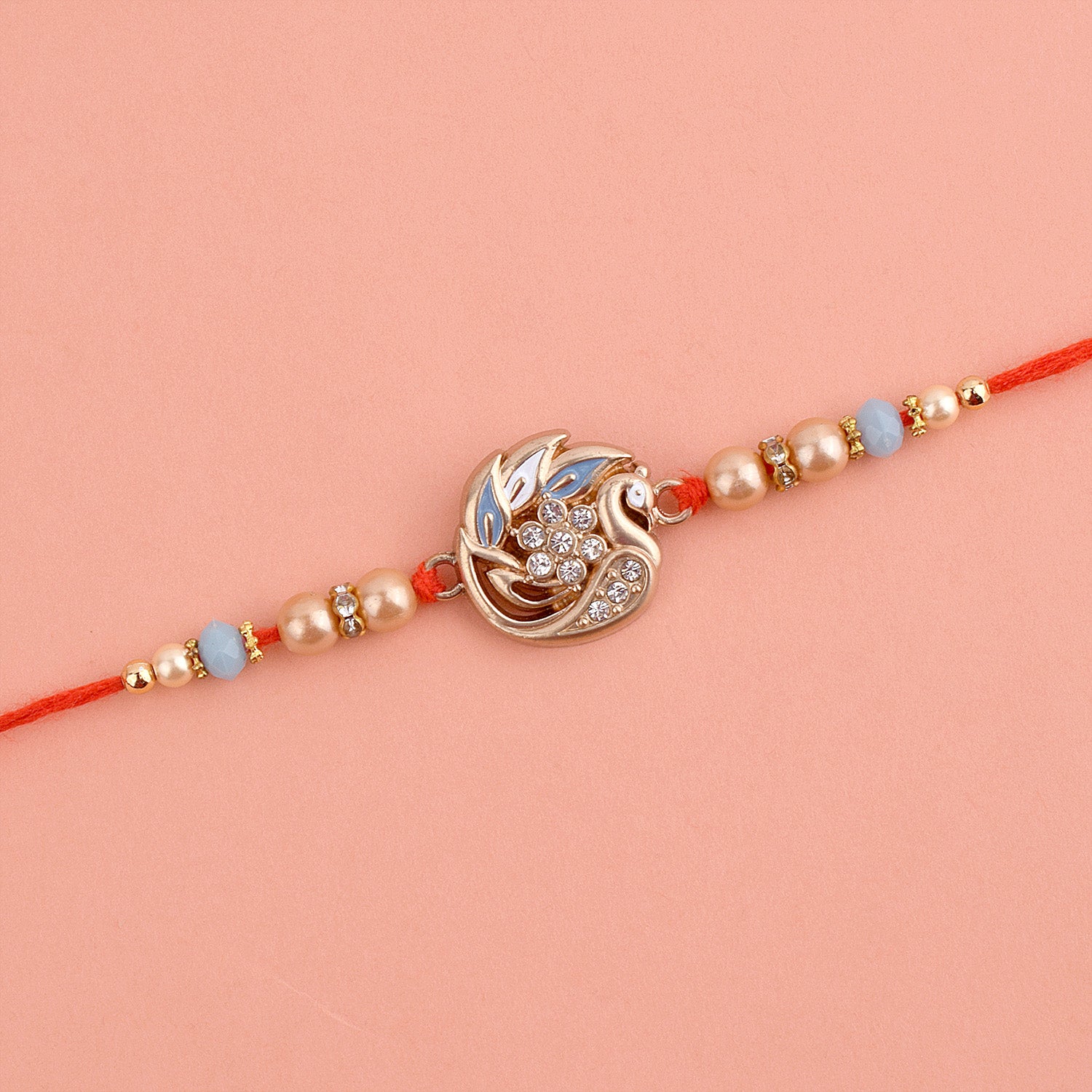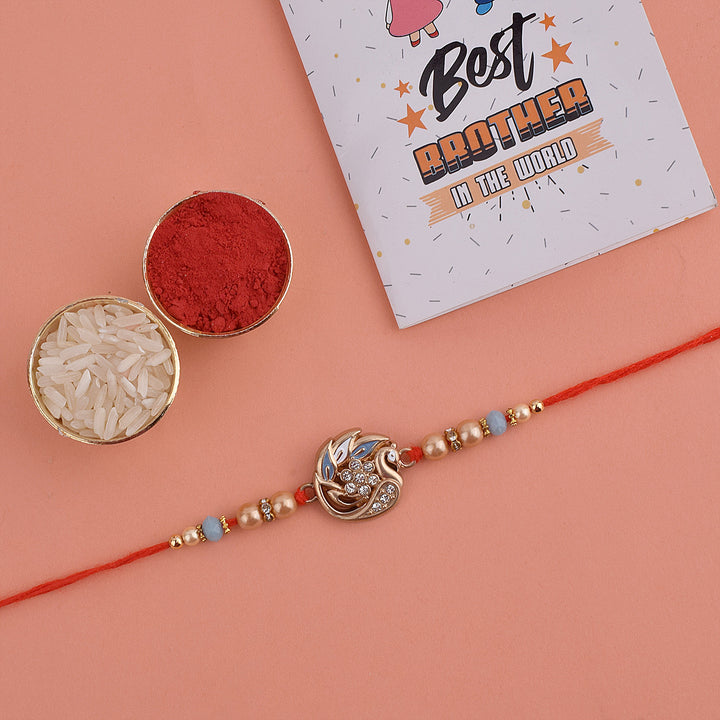 Beaded Rakhi: Adorned with intricate beads, our beaded rakhi collection exudes charm and elegance. Celebrate the joyous bond with your siblings as you tie these vibrant and delightful rakhis on their wrists.