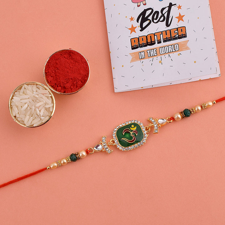 Kundan Rakhi: Bedecked with dazzling Kundan stones, our kundan rakhi collection epitomizes elegance and opulence. Celebrate the cherished moments and memories shared with your siblings.