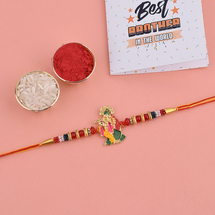 • Package:Β 1 Pc Rakhi, roli akshat and greeting card