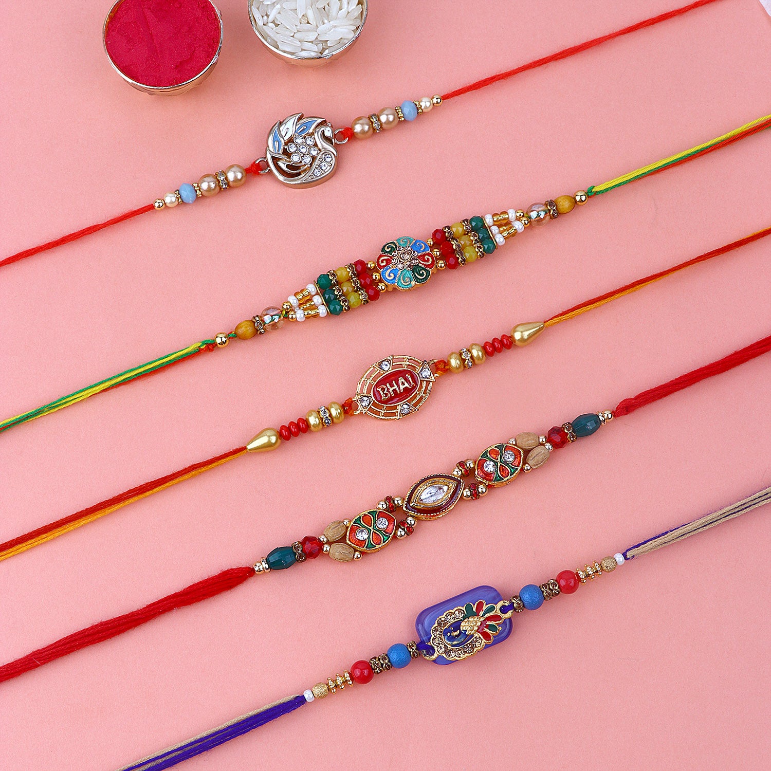 Beaded Bhaiya Rakhi Set of 2: Bedecked with colorful beads, these rakhis represent the joyous moments and cherished memories of growing up together. Embrace nostalgia and affection with this delightful beaded rakhi set.