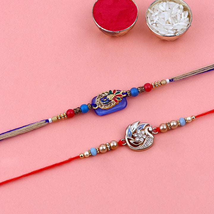 Beaded Bhaiya Rakhi Set of 2: Bedecked with colorful beads, these rakhis represent the joyous moments and cherished memories of growing up together. Embrace nostalgia and affection with this delightful beaded rakhi set.