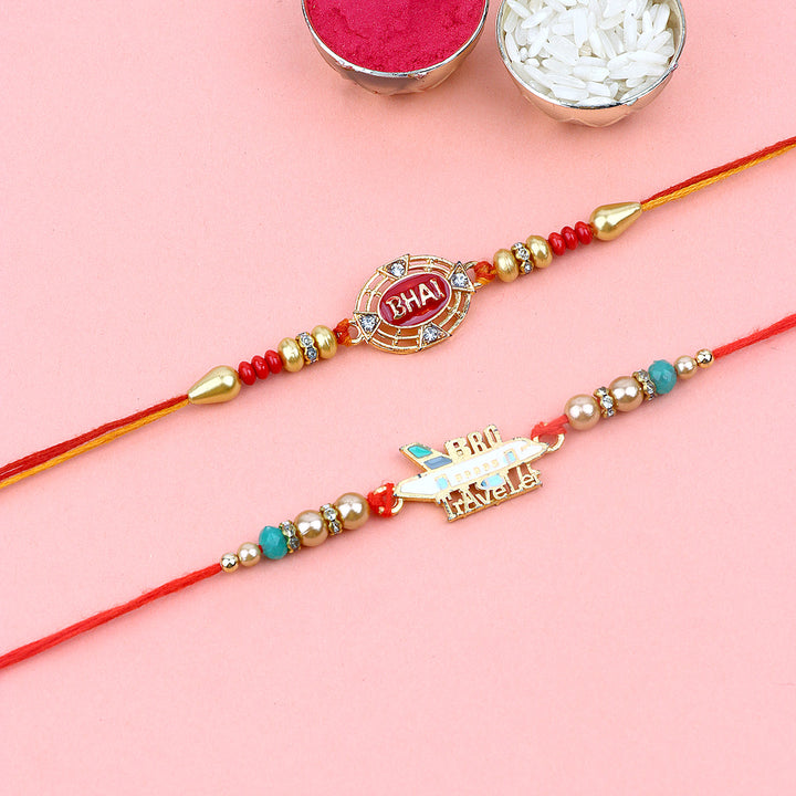 Beaded Bhaiya Rakhi Set of 2: Bedecked with colorful beads, these rakhis represent the joyous moments and cherished memories of growing up together. Embrace nostalgia and affection with this delightful beaded rakhi set.