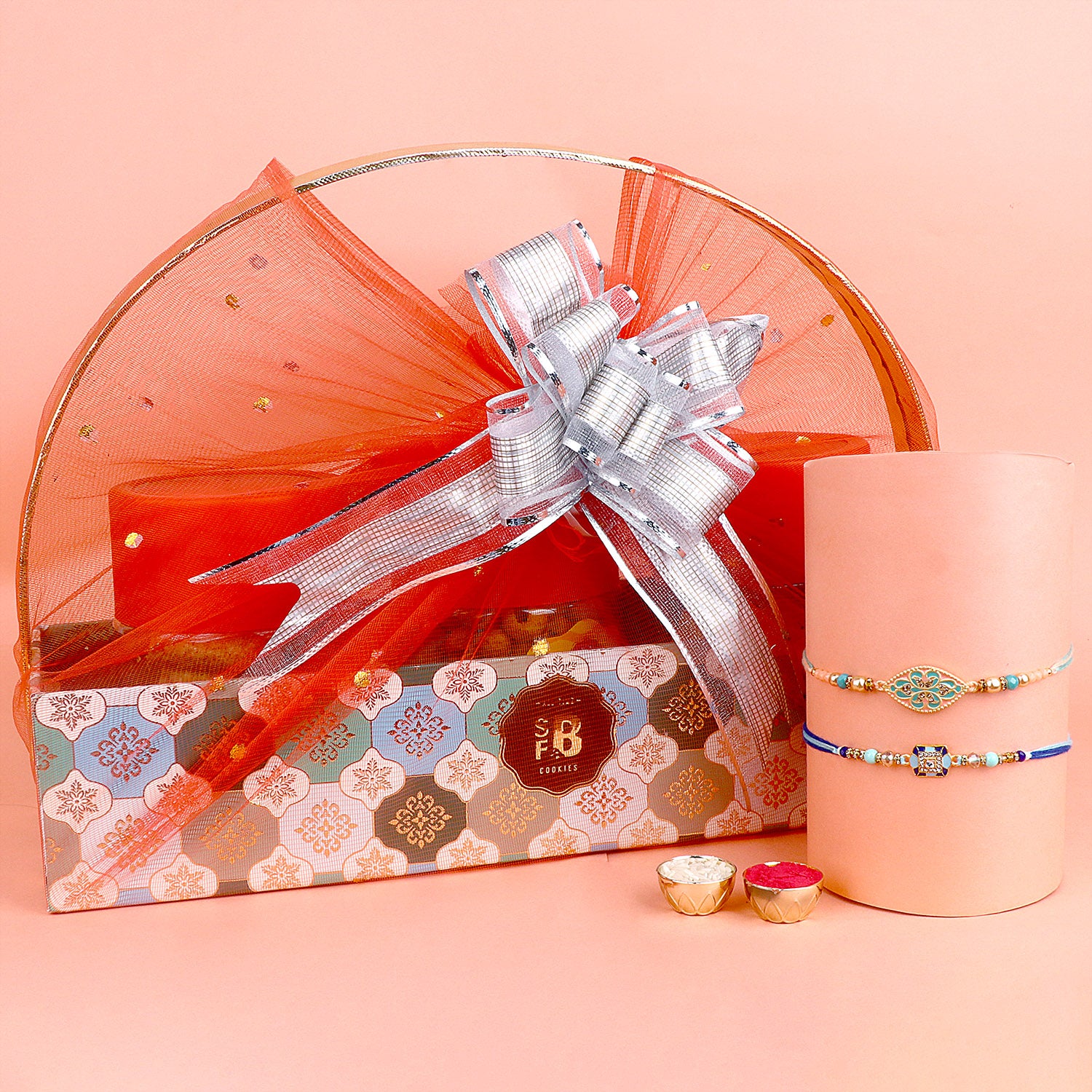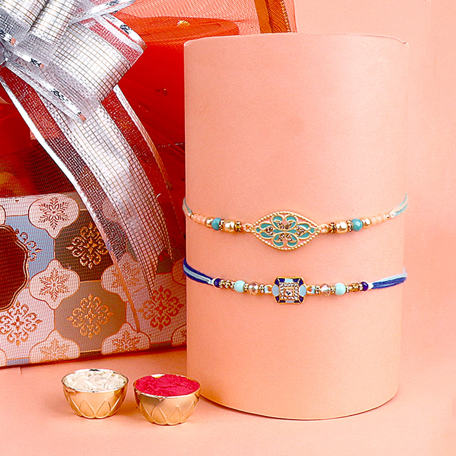 These handcrafted Rakhi with Thali Sets serve as a complete ritualistic package, offering a convenient and traditional way to perform the Raksha Bandhan ceremony. The set not only symbolizes the bond between a brother and sister but also signifies the devotion, love, and gratitude shared on this special occasion.