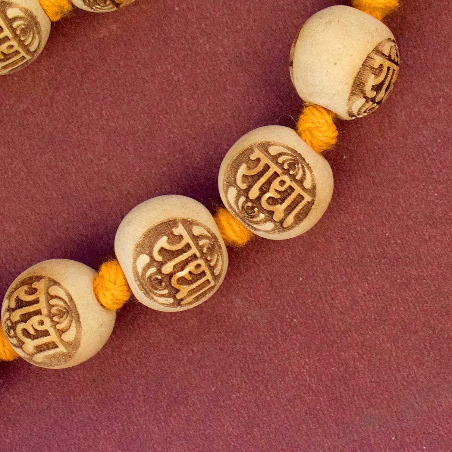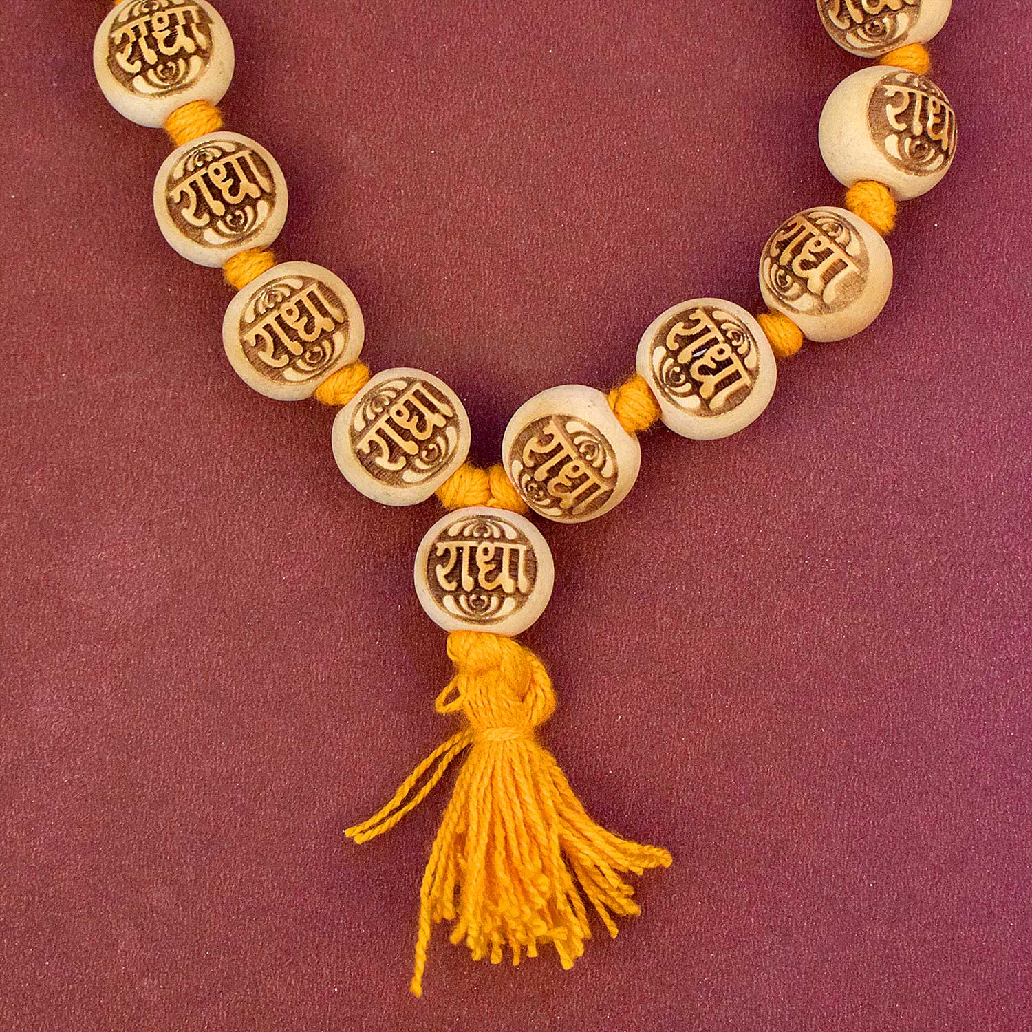 • Made from smooth, high-quality wood with “Radha Radha” intricately engraved on each bead