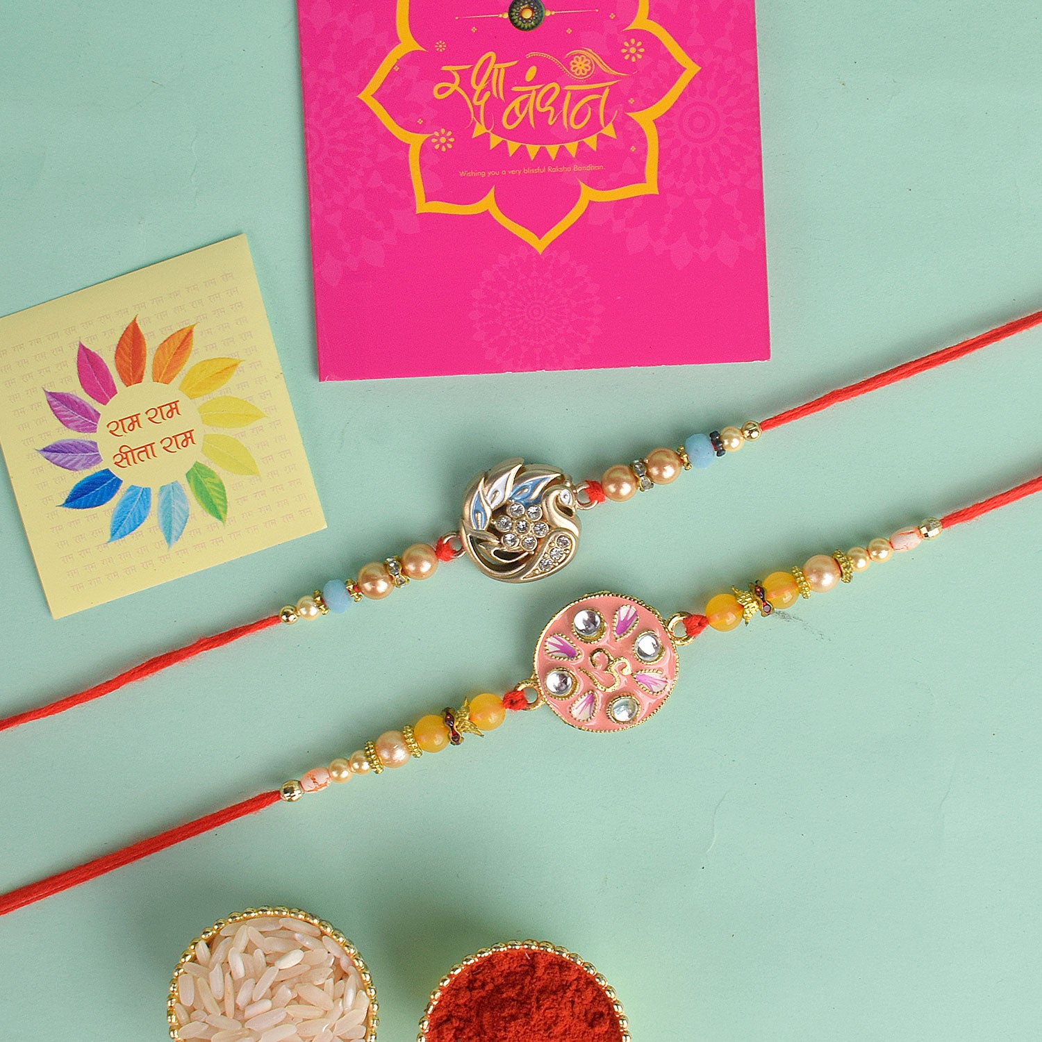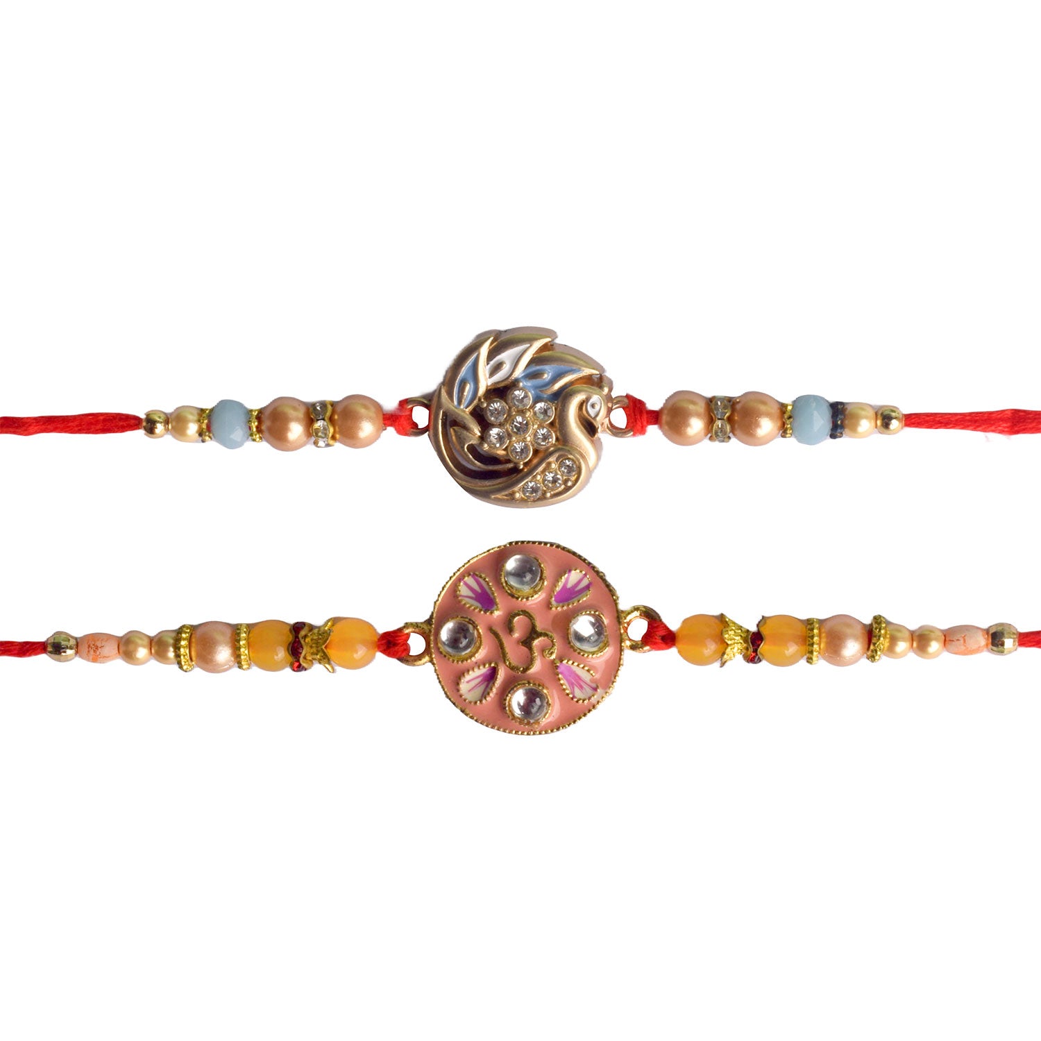 Lovely Beaded with Om Bhaiya Rakhi Set of 2