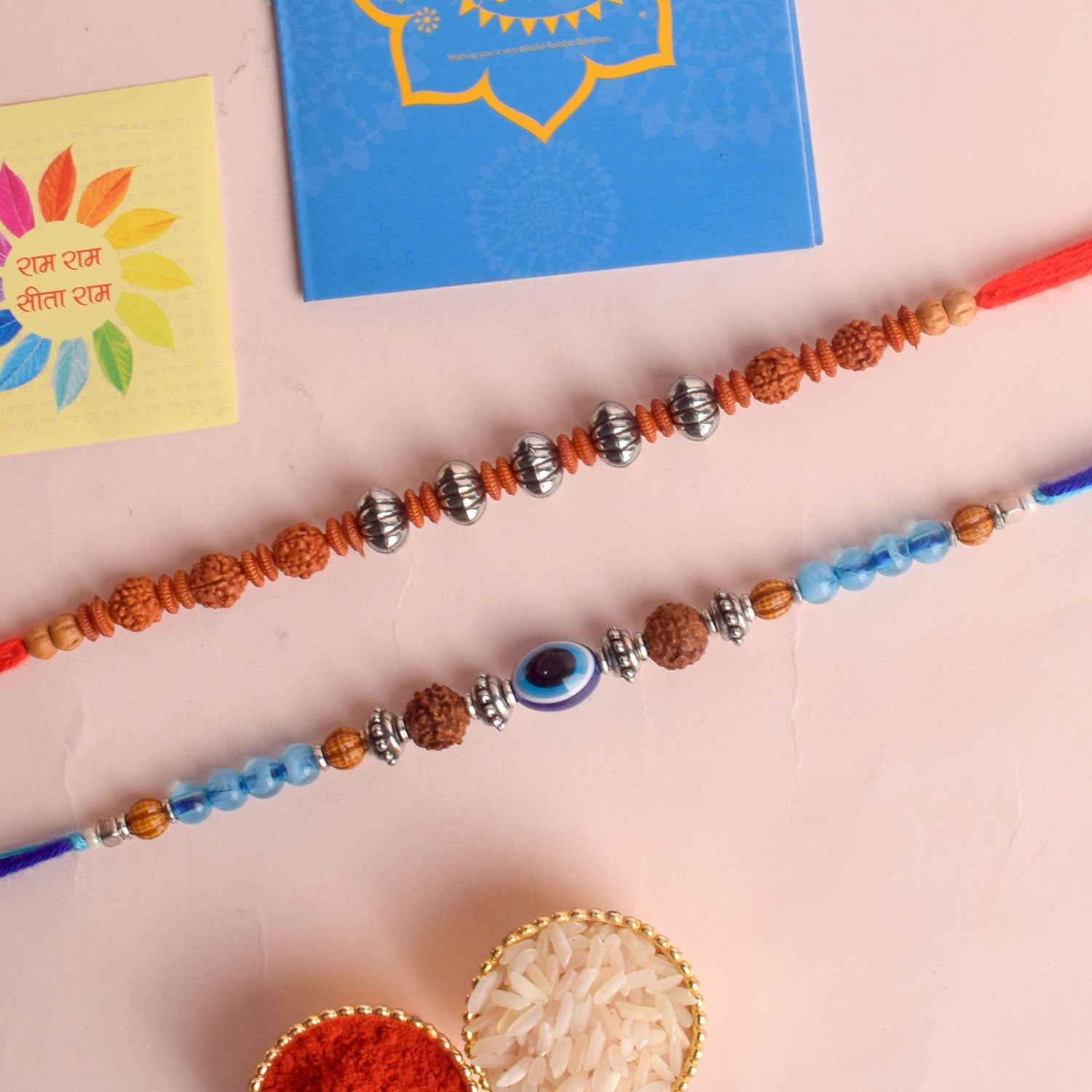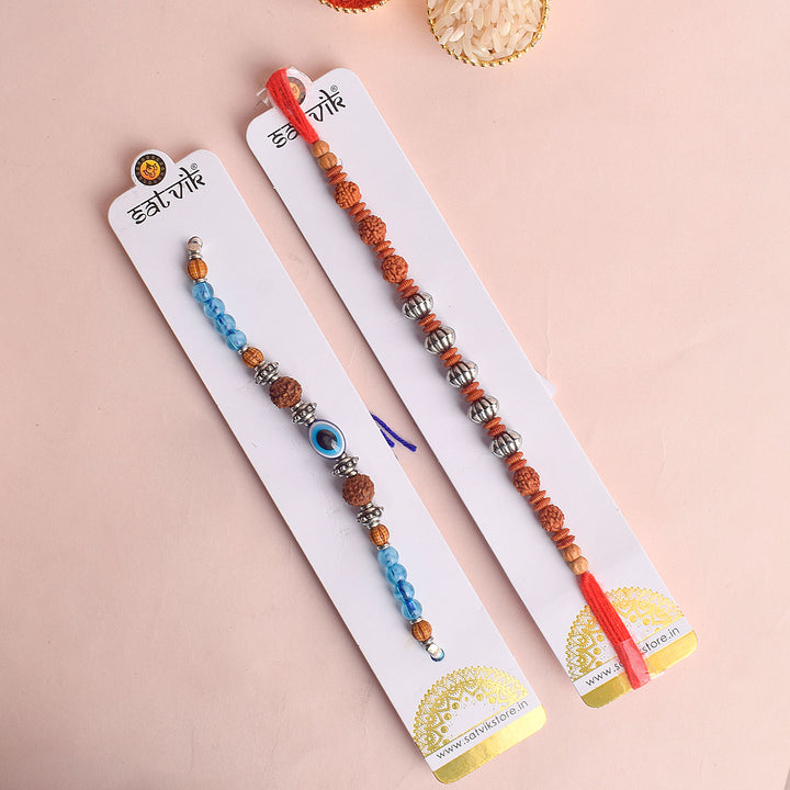 Rudraksha & Evil Eye Designed Rakhi for Men Set of 2