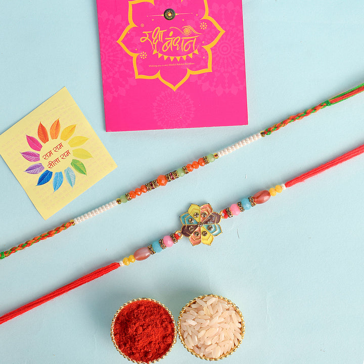 Set of 2 Rakhi | Rakhi for Brothers | Traditional Rakhi Combo | Rakhi Set with Roli Chawal | Buy Rakhi Online | Designer Rakhi for Brother | Rakhi with Stickers | Raksha Bandhan Rakhi Set | Premium Rakhi Threads | Rakhi for Siblings