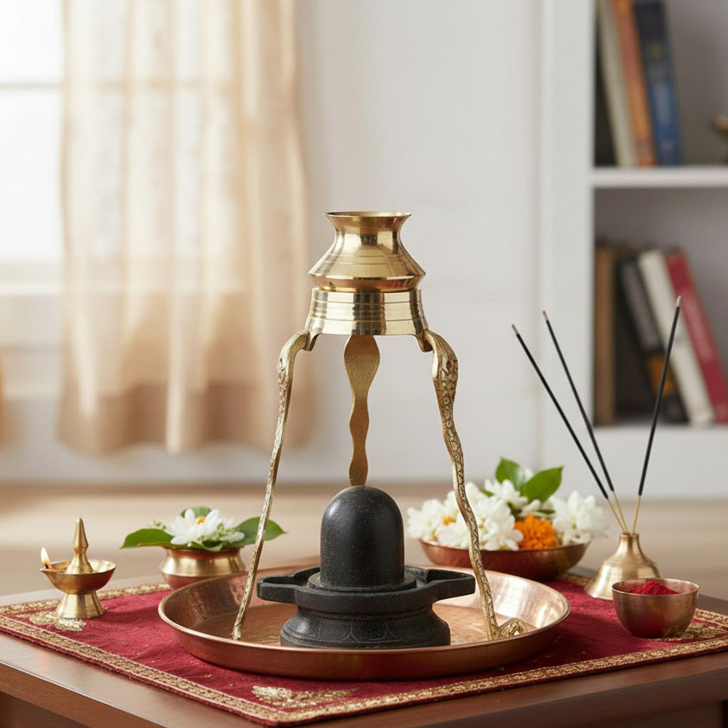 • Uses: The Traditional Pure Brass Shivling Abhishek Stand is used to perform Shivling abhishek in a proper and traditional way. It securely holds the Shivling while allowing water, milk, curd, honey, ghee, or holy Ganga jal to flow smoothly during pooja. The stand helps keep the worship area clean and organized during rituals. It is ideal for daily Shiv pooja as well as special occasions like Maha Shivratri and Shravan month worship. Suitable for home temples and pooja rooms, it enhances the sanctity and traditional setup of Shiv worship.