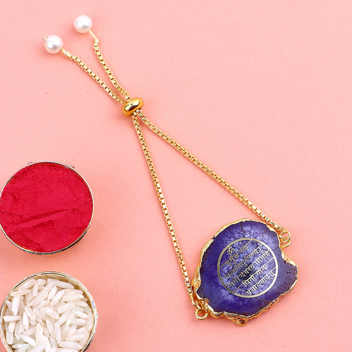 Enchanting Affirmation: Aesthetically Divine Gayatri Mantra Agate Stone Rakhi